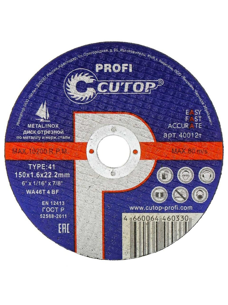 Вы можете приобрести «Диск отрезной по металлу и нержавеющей стали, Cutop, Profi T41, диаметр 150х1.6 мм, посадочный диаметр 22.2 мм, зернистость 46, 40012т» и другие товары в нашем интернет-магазине в Брянске по низким ценам и с бесплатным самовывозом.