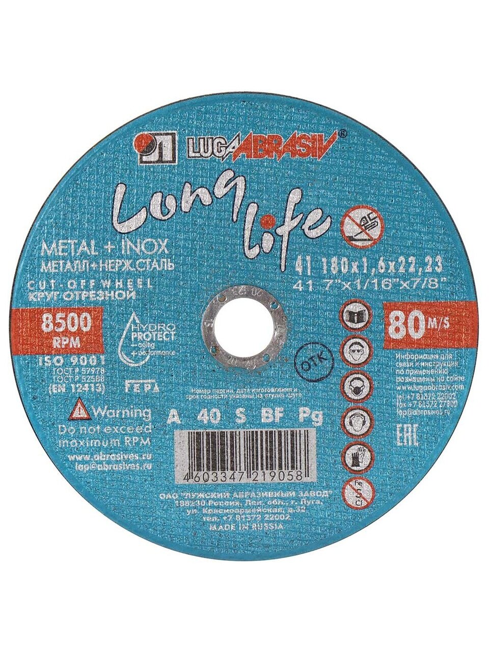 Вы можете приобрести «Круг отрезной по металлу, LugaAbrasiv, Long life, BF, диаметр 180х1.6 мм, посадочный диаметр 22.23 мм, зернистость A40, S 80 м/с» и другие товары в нашем интернет-магазине в Воронеже по низким ценам и с бесплатным самовывозом.