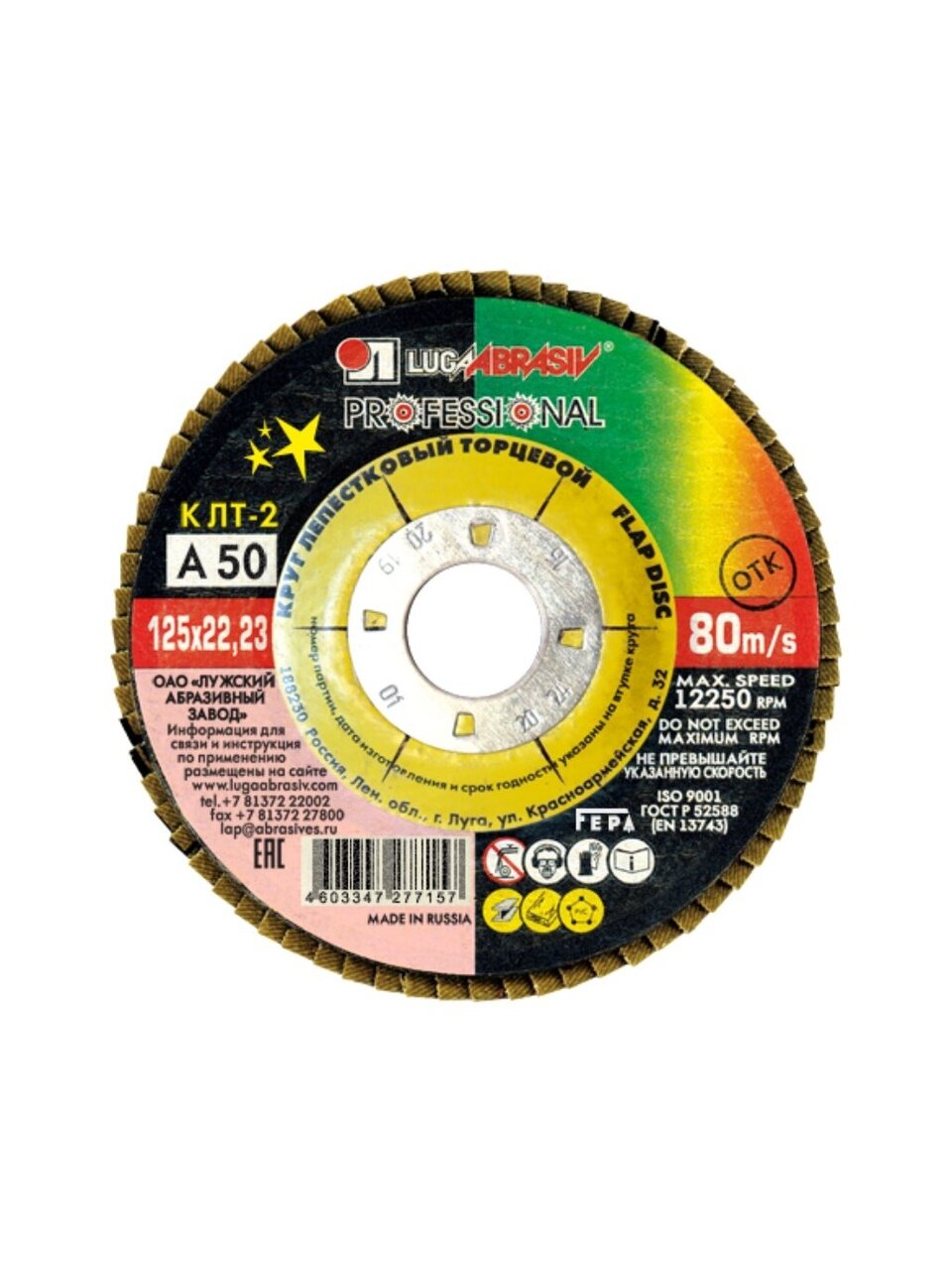 Вы можете приобрести «Круг лепестковый торцевой КЛТ2 для УШМ, LugaAbrasiv, диаметр 125 мм, посадочный диаметр 22 мм, зернистость A50, шлифовальный» и другие товары в нашем интернет-магазине в Курске по низким ценам и с бесплатным самовывозом.