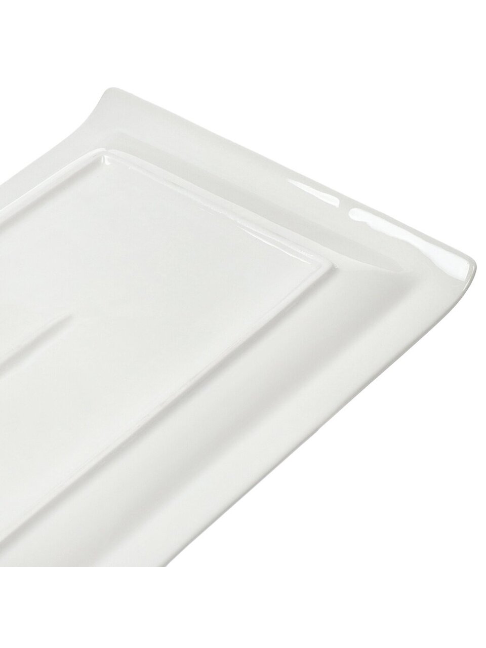 - Современный минимализм — белое прямоугольное блюдо подойдёт к любому интерьеру и сервировке