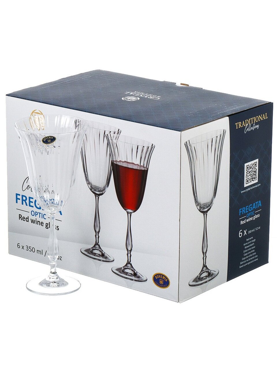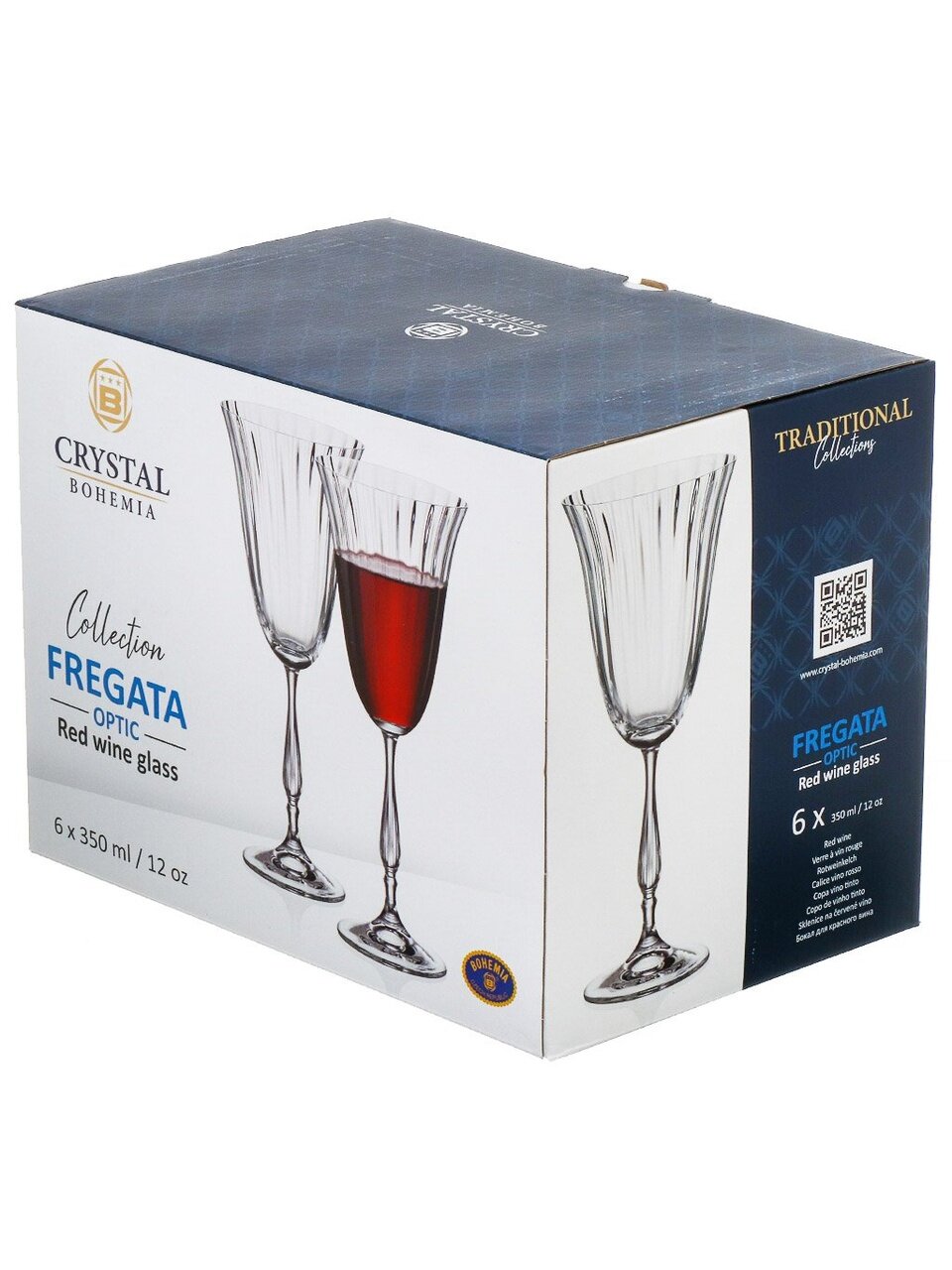 Бокалы для вина Bohemia Fregata Optic, 350 мл, 6 шт — стильный подарок и идеальное решение для сервировки: прочное стекло, рельефный дизайн, подходит для посудомоечной машины.