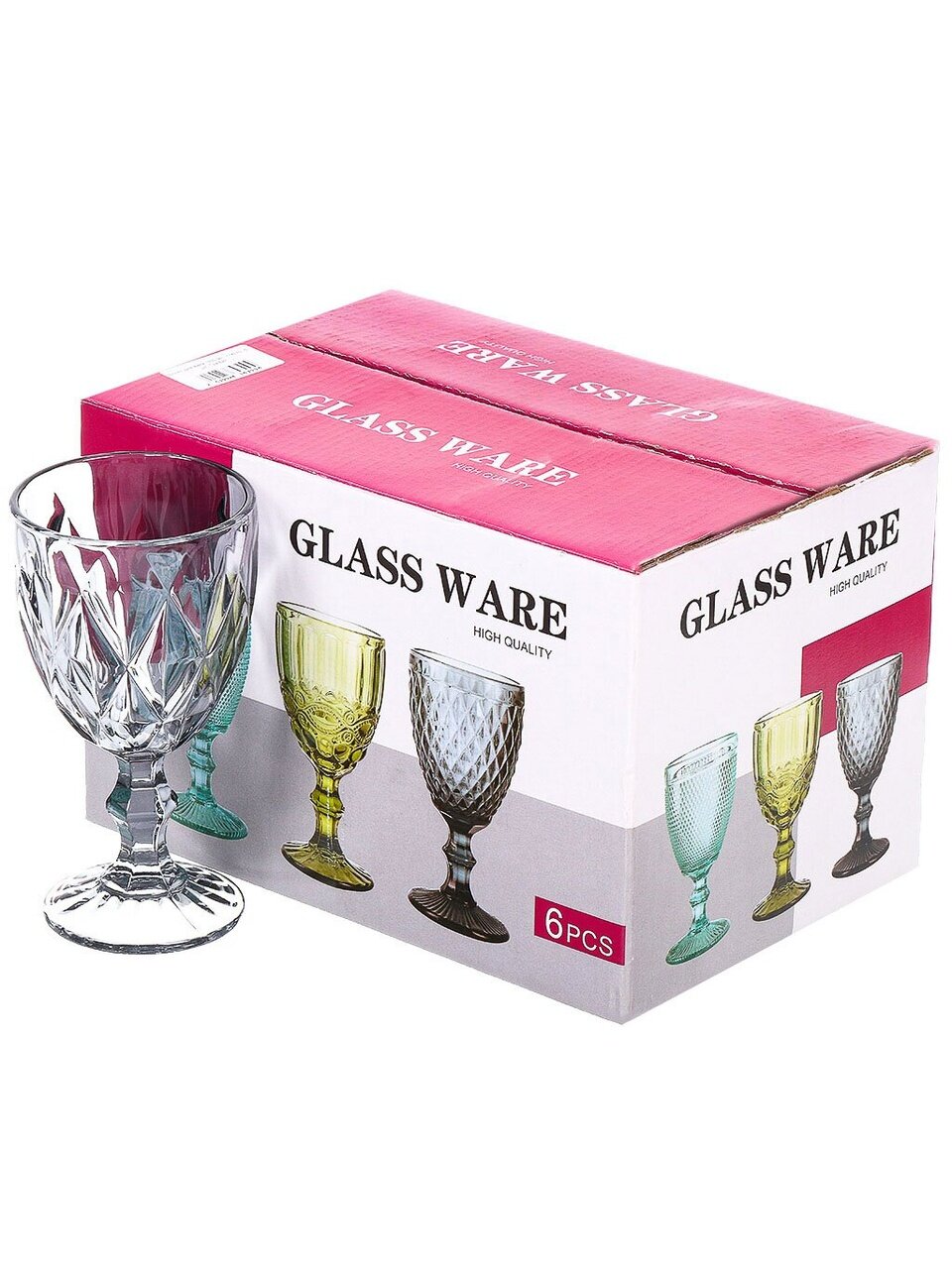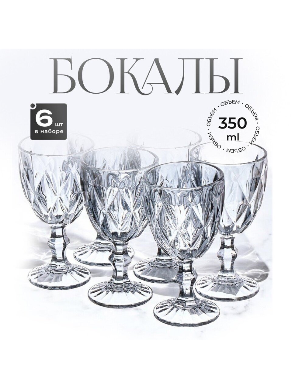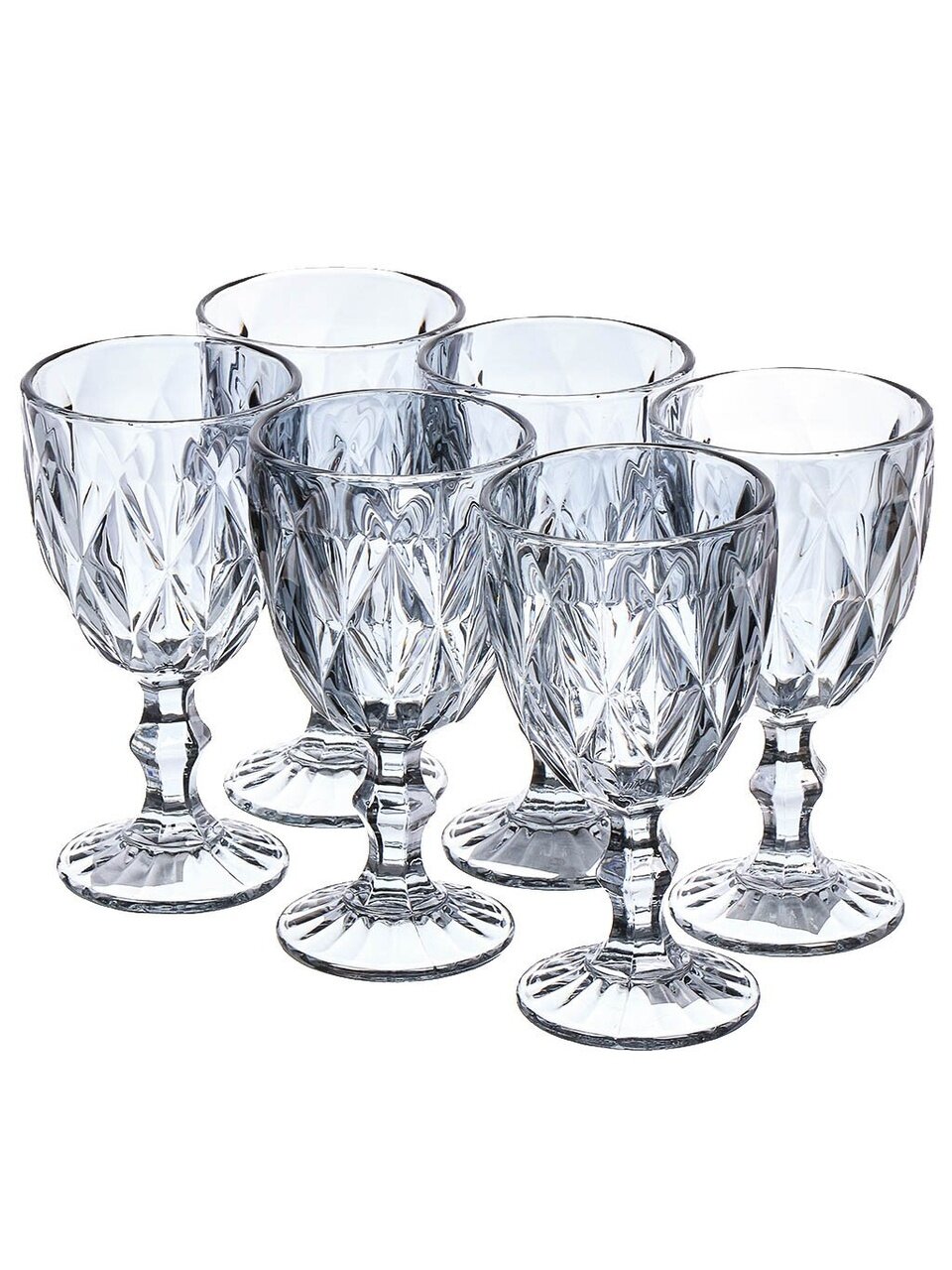 Бокалы для вина Daniks Графит 350 мл — набор 6 стильных рельефных бокалов из прессованного стекла с подарочной упаковкой. Идеальный выбор для дома, дачи и подарка.