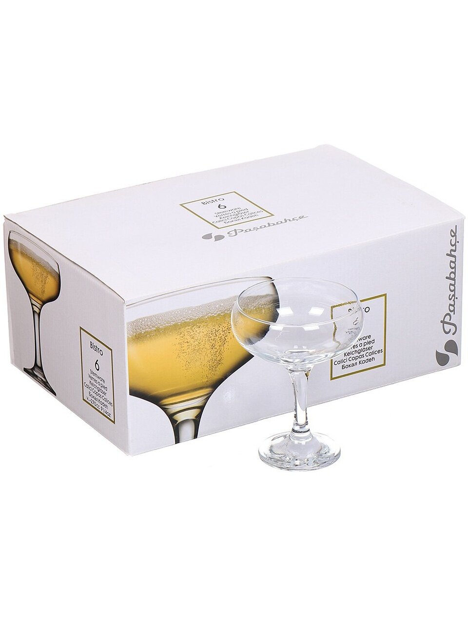 Бокалы для шампанского Pasabahce Bistro 270 мл — набор из 6 элегантных стеклянных фужеров для стильных праздников и уютных вечеров. Подарочная упаковка, долговечность, универсальность.