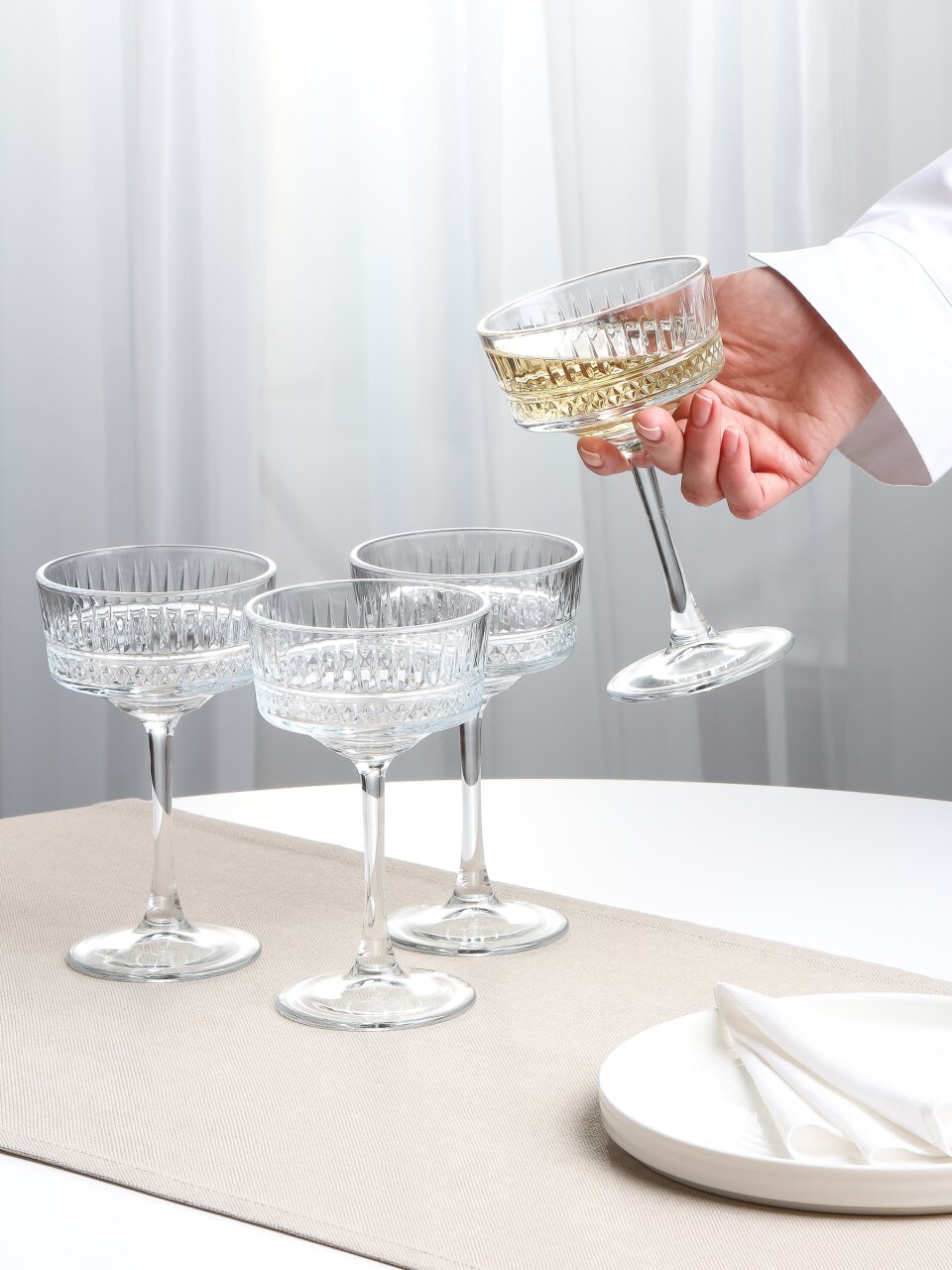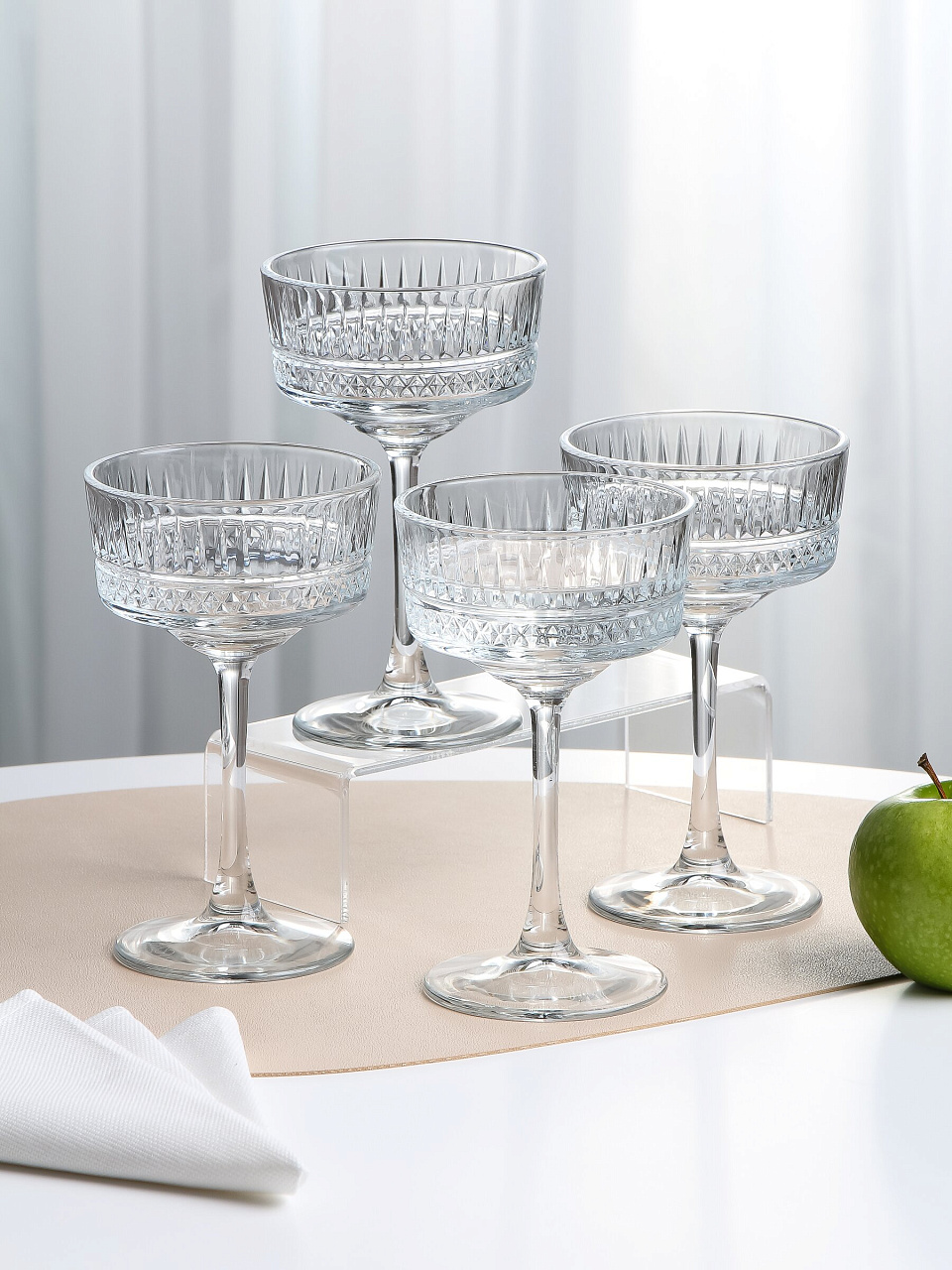 В каждом бокале — 260 мл, в комплекте 4 штуки. Это оптимальный размер для подачи шампанского и игристых вин на любой случай.