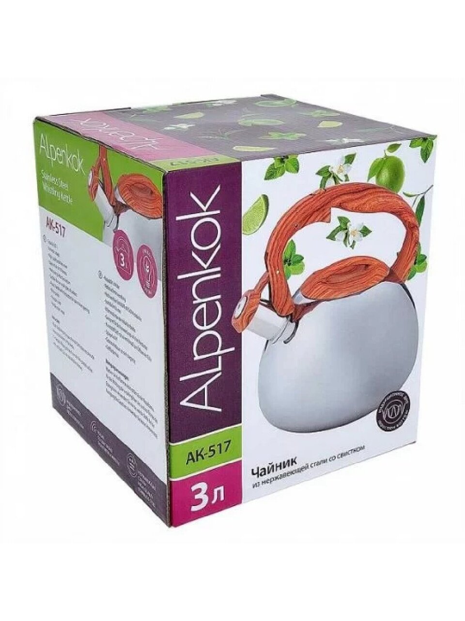Вы можете приобрести «Чайник нержавеющая сталь, 3 л, со свистком, зеркальный, ручка пластиковая, Alpenkok, индукция, AK-517» и другие товары в нашем интернет-магазине в Астрахани по низким ценам и с бесплатным самовывозом.