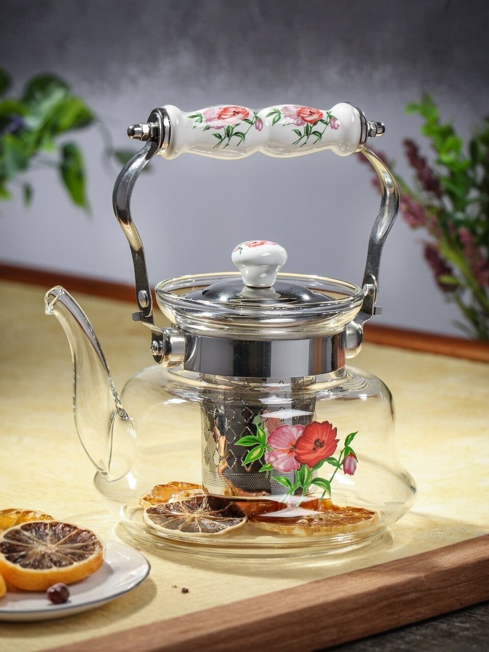 - Заварочный чайник из стекла удобно использовать для повседневного заваривания чая практически любого сорта. Но цветочные, фруктовые, красные и желтые сорта чая лучше других раскрывают свой вкус и аромат при заваривании именно в стеклянных чайниках, а также сохраняют все полезные ферменты и витамины, содержащиеся в чайных листах.