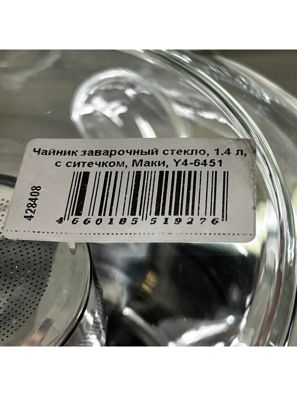 Вы можете приобрести «Чайник заварочный стекло, 1.4 л, с ситечком, Маки, Y4-6451» и другие товары в нашем интернет-магазине в Казани по низким ценам и с бесплатным самовывозом.
