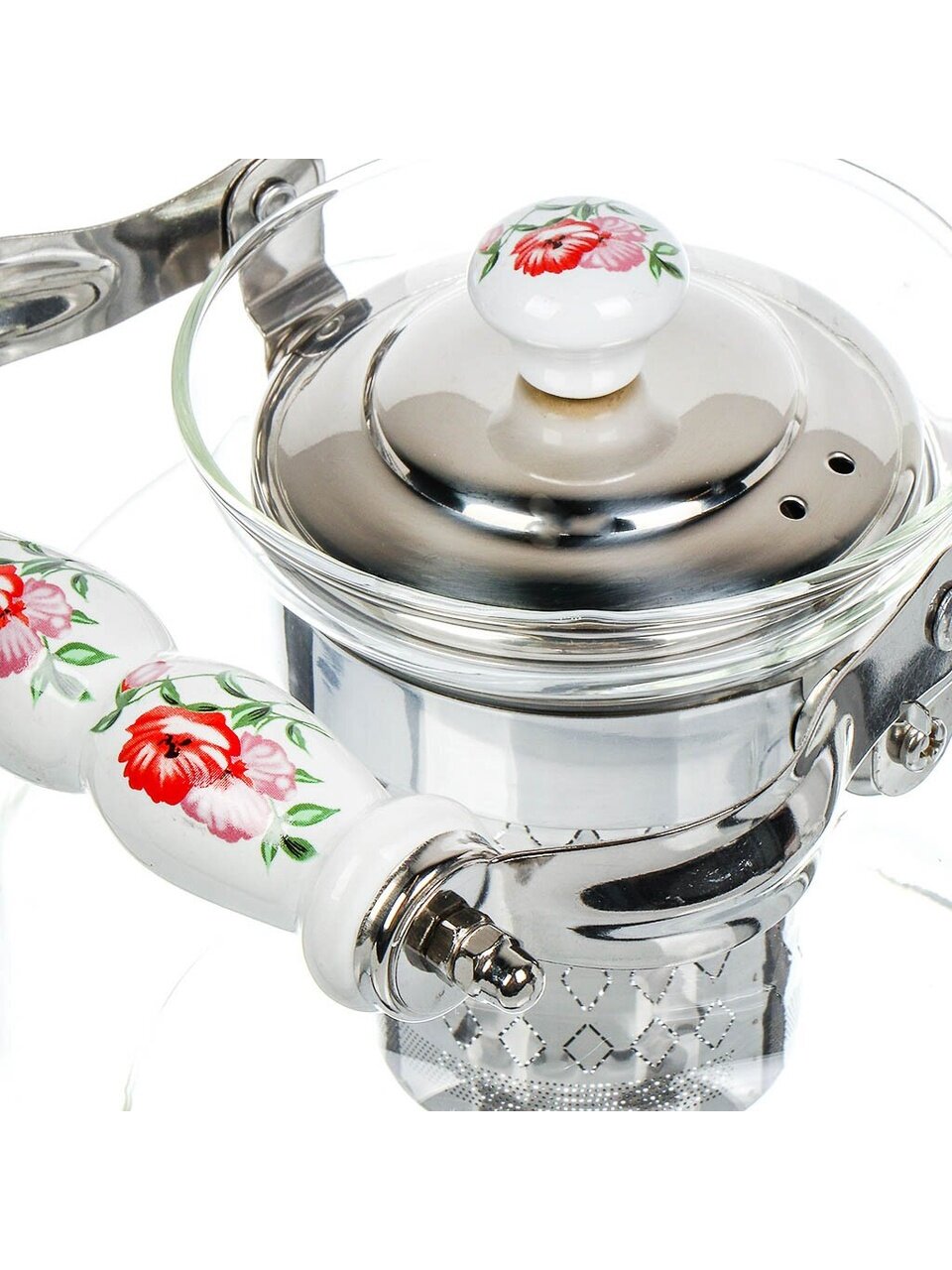 Заварочный чайник "Маки" изготовлен из стекла, фильтр выполнены из нержавеющей стали.