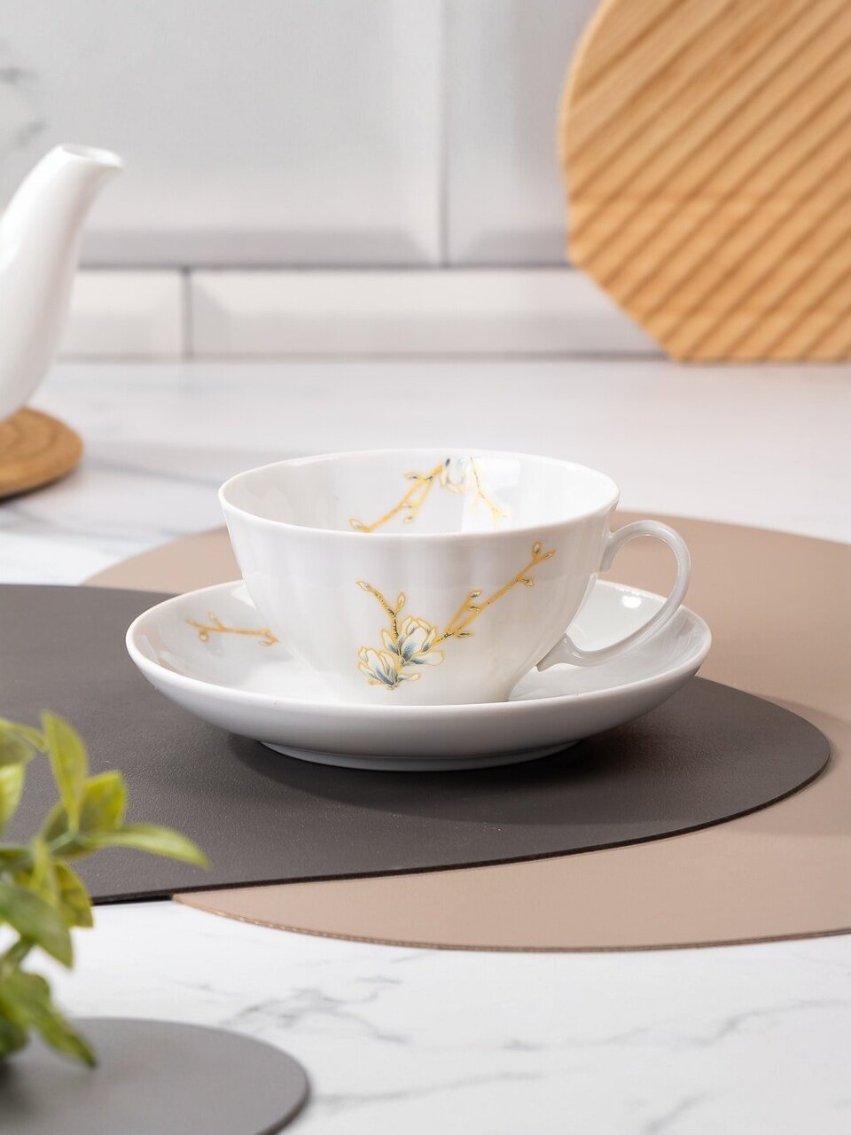 Отличительной чертой каждого элемента чайной пары является их превосходное качество и уникальный дизайн. Цвет фарфора подчеркивает естественную свежесть и чистоту напитка.