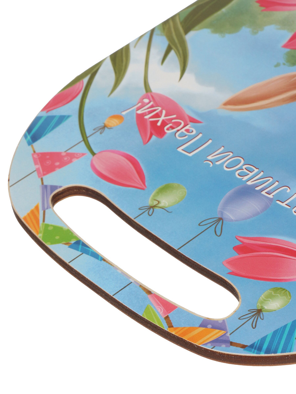 Доска разделочная из дерева 29х21 см с ручкой — для стильной кухни, удобной готовки и сервировки. Универсальный размер, яркий дизайн «Цветы».