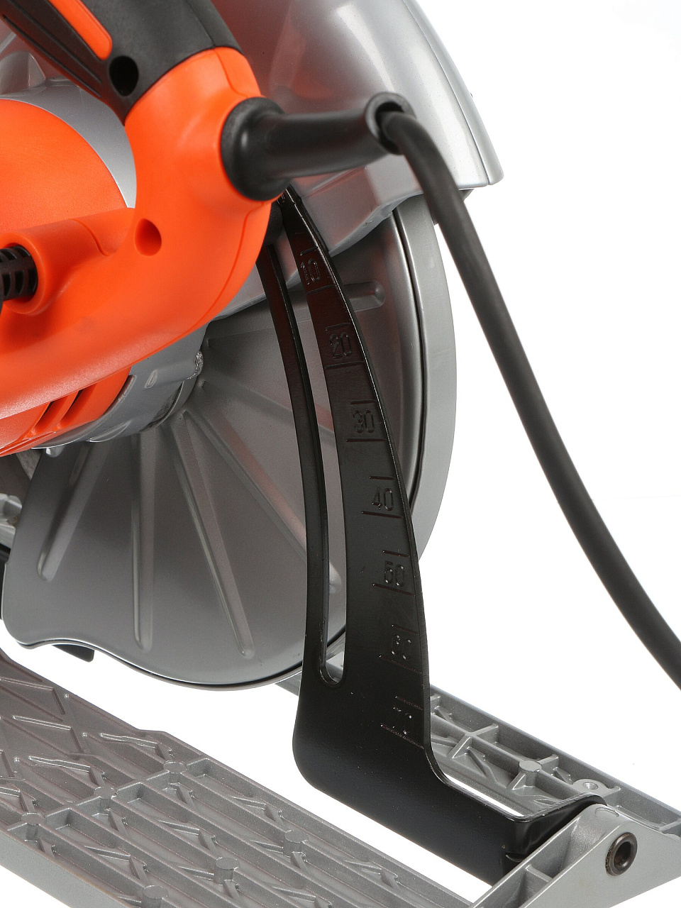 Диск диаметром 190 мм, посадочный 30 мм. Максимальная глубина пропила — 67 мм (под углом 90°) и 46 мм под 45°.