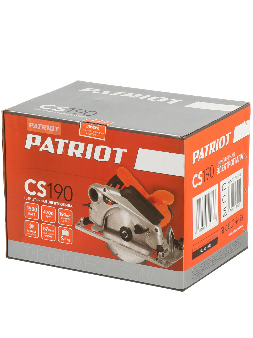 Вы можете приобрести «Электропила циркулярная, Patriot, СS 190, 1500 Вт, 190х30 мм, 67 мм, 4700 об/мин, 190301640» и другие товары в нашем интернет-магазине в Белгороде по низким ценам и с бесплатным самовывозом.