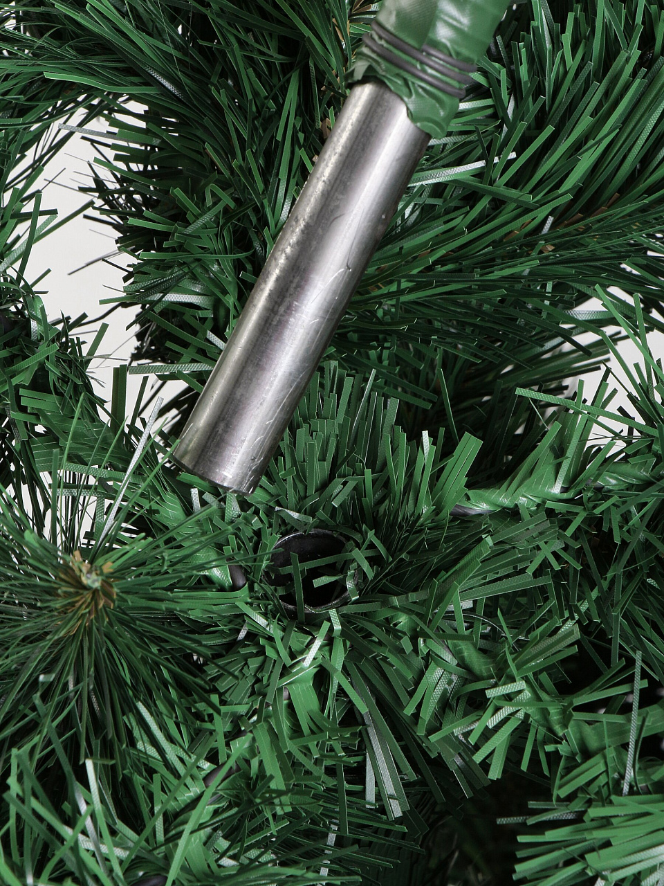 Хвоя выполнена из ПВХ-пленки — устойчивой к деформации и выцветанию, подставка из прочного пластика, что гарантирует долгий срок службы и легкость конструкции.