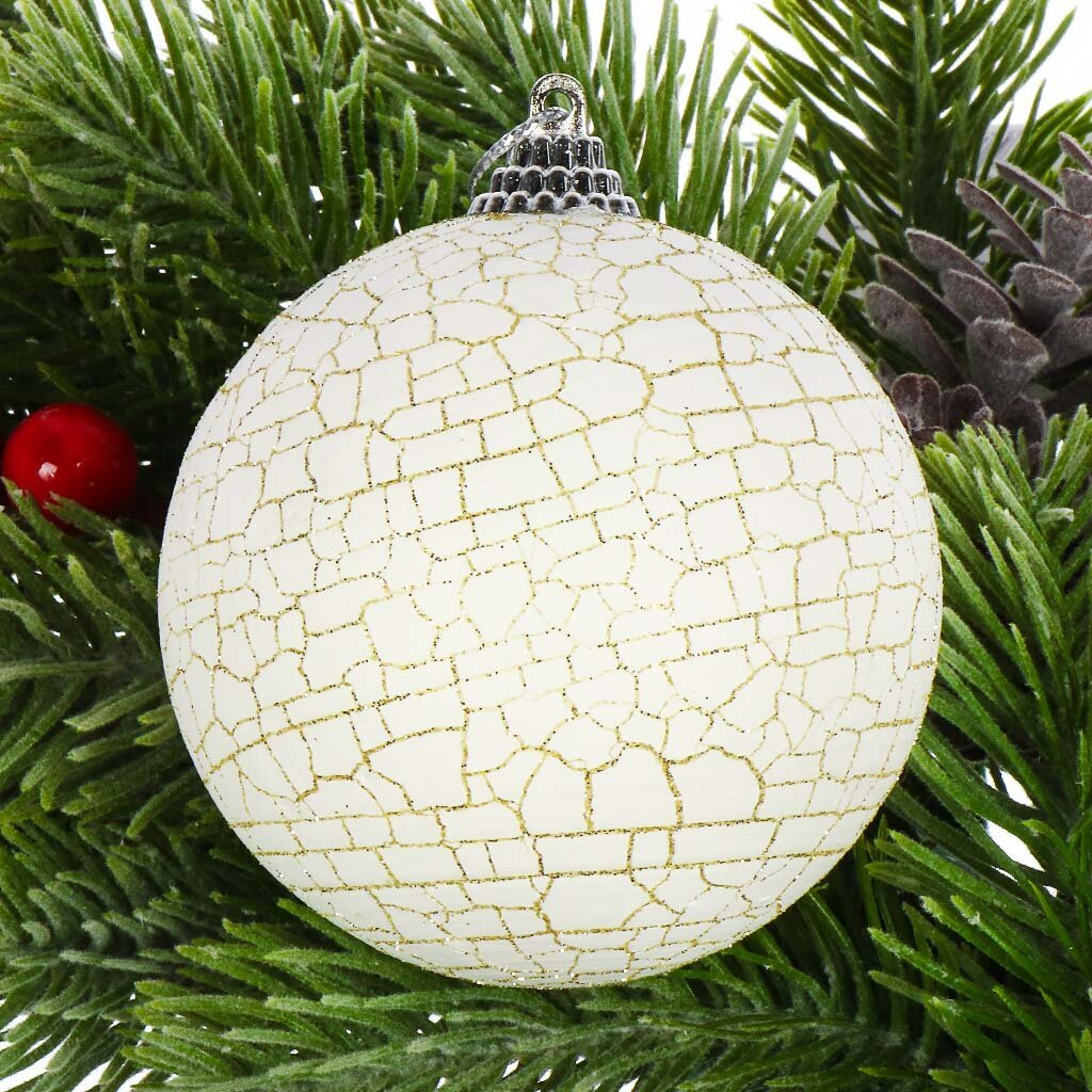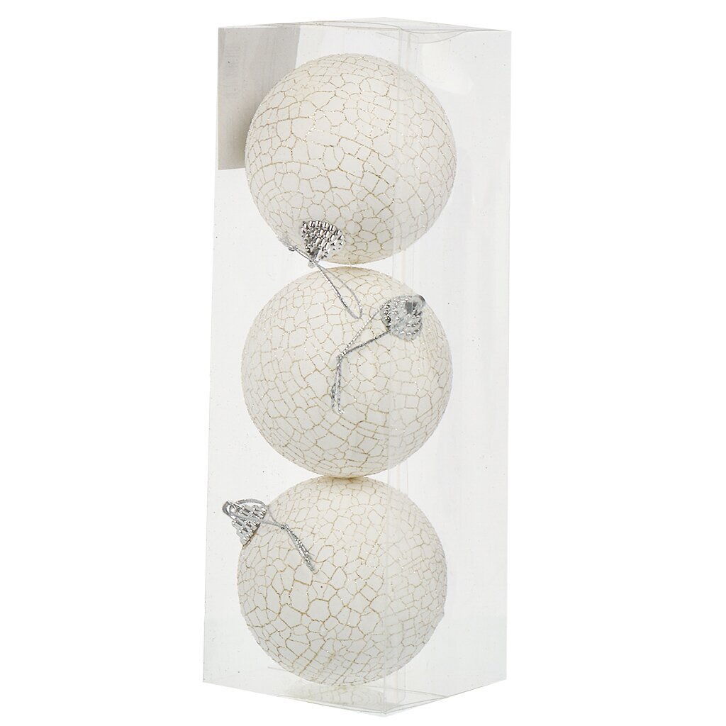 В наборе 3 белых шара диаметром 8 см, все украшения поставляются в коробке, что удобно для хранения и транспортировки.