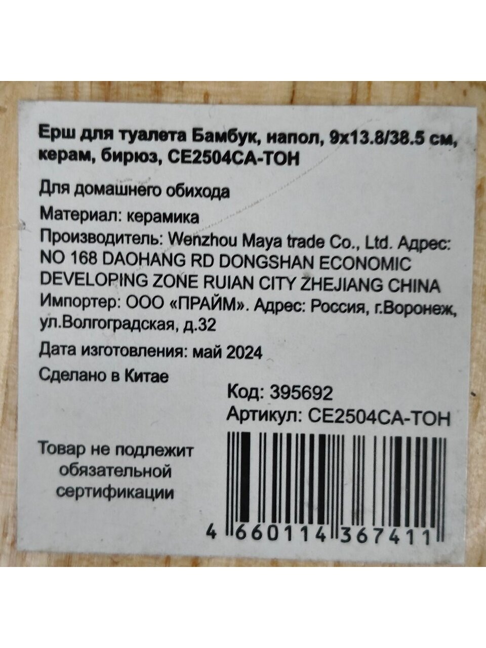 Вы можете приобрести «Ерш для туалета Бамбук, напольный, 9x13.8/38.5 см, керамика, бирюза, CE2504CA-TOH» и другие товары в нашем интернет-магазине в Старом Осколе по низким ценам и с бесплатным самовывозом.
