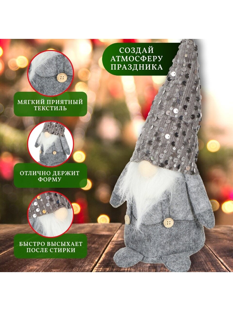 Фигурка декоративная Гном - сказочный персонаж, который подчеркивает магию зимних праздников и привносит новые эмоции в атмосферу новогоднего оформления дома.