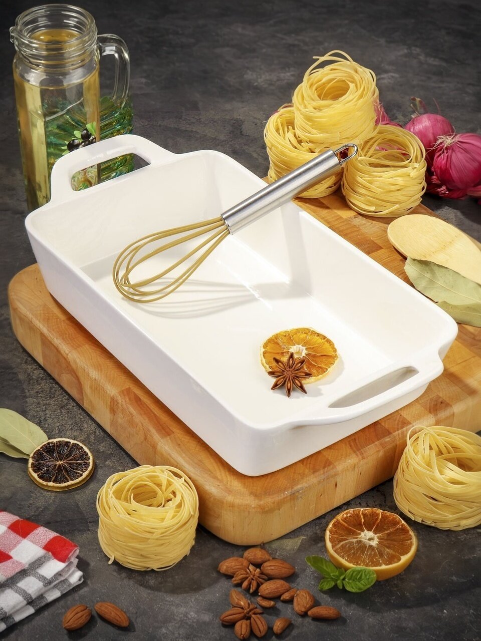Форма для запекания из керамики Daniks Антарктида — выбор тех, кто ищет долговечную посуду для духовки без антипригарного покрытия. Керамика сохраняет тепло и обеспечивает равномерную прожарку, что особенно важно для приготовления мяса, рыбы, овощей и запеканок. Благодаря прямоугольной форме вы сможете удобно разместить большие порции, а белый цвет подчеркнет эстетику сервировки.