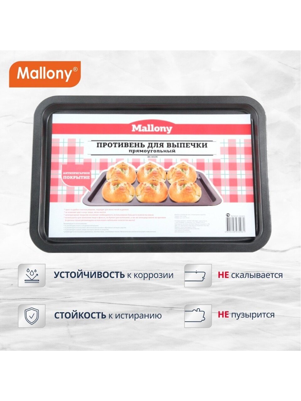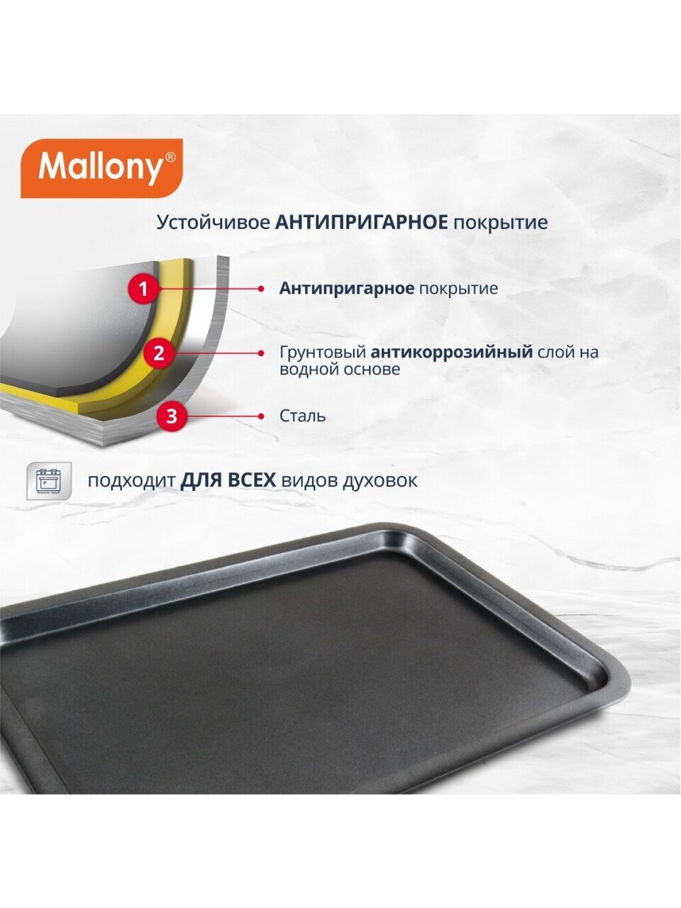 Прямоугольная форма для запекания Mallony 43,2×29×1,85 см: антипригарное покрытие, сталь 0,4 мм — идеальный выбор для равномерной выпечки дома и на даче.
