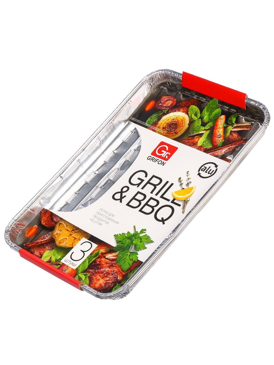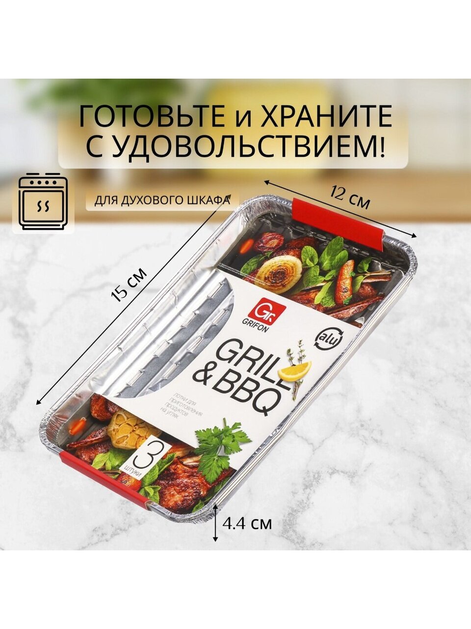 Форма для запекания Grifon 15×12,4×4,4 см — 3 шт: жаропрочный алюминий, рифленое дно, оптимально для выпечки и курицы. Решение для быстрой готовки дома и на даче.