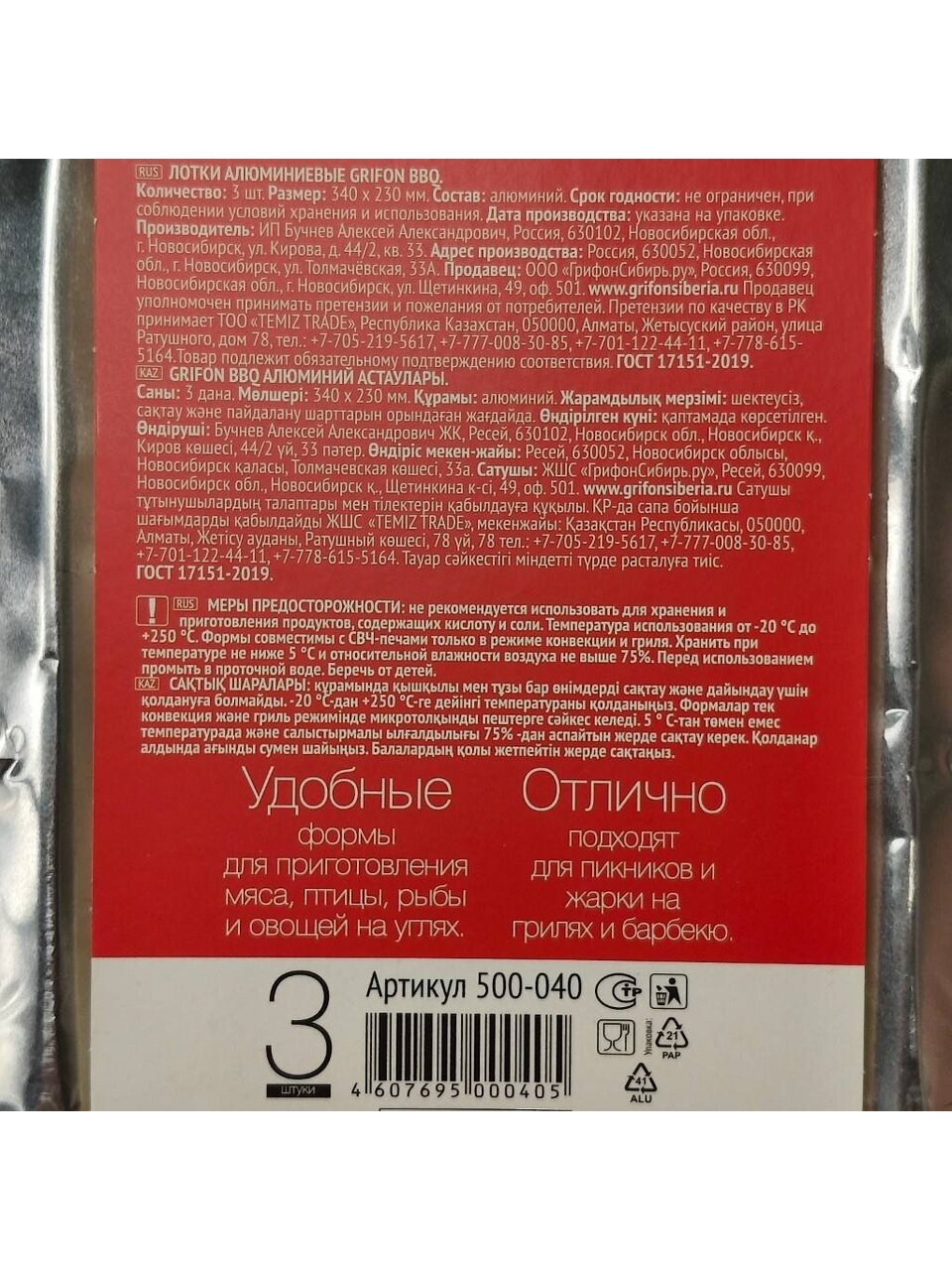 Как использовать алюминиевую форму Grifon? Просто наполните её ингредиентами и ставьте в духовку — не требуется дополнительной подготовки. Можно ли мыть в посудомоечной машине? Нет, эти формы одноразовые, что особенно удобно при массовых застольях или выезде на природу. В отличие от многоразовых форм, Grifon не требует ухода, а набор из 3 штук выгоден для семейного или дачного использования.