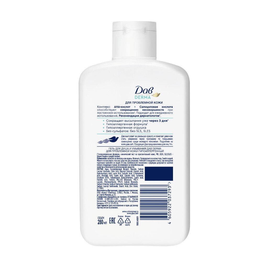 Гипоаллергенный гель для душа и умывания Дав: забота о чувствительной и проблемной коже, эффективное очищение и комфорт на каждый день — 280 мл по выгодной цене.