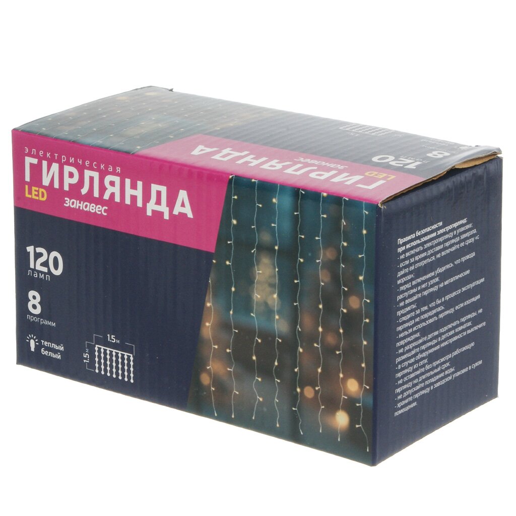 Вы можете приобрести «Гирлянда 120ламп, 1.5х1.5 м, 8 реж, Занавес, свет тепл бел, прозрач, сет, пульт, SY20L-09» и другие товары в нашем интернет-магазине в Казани по низким ценам и с бесплатным самовывозом.