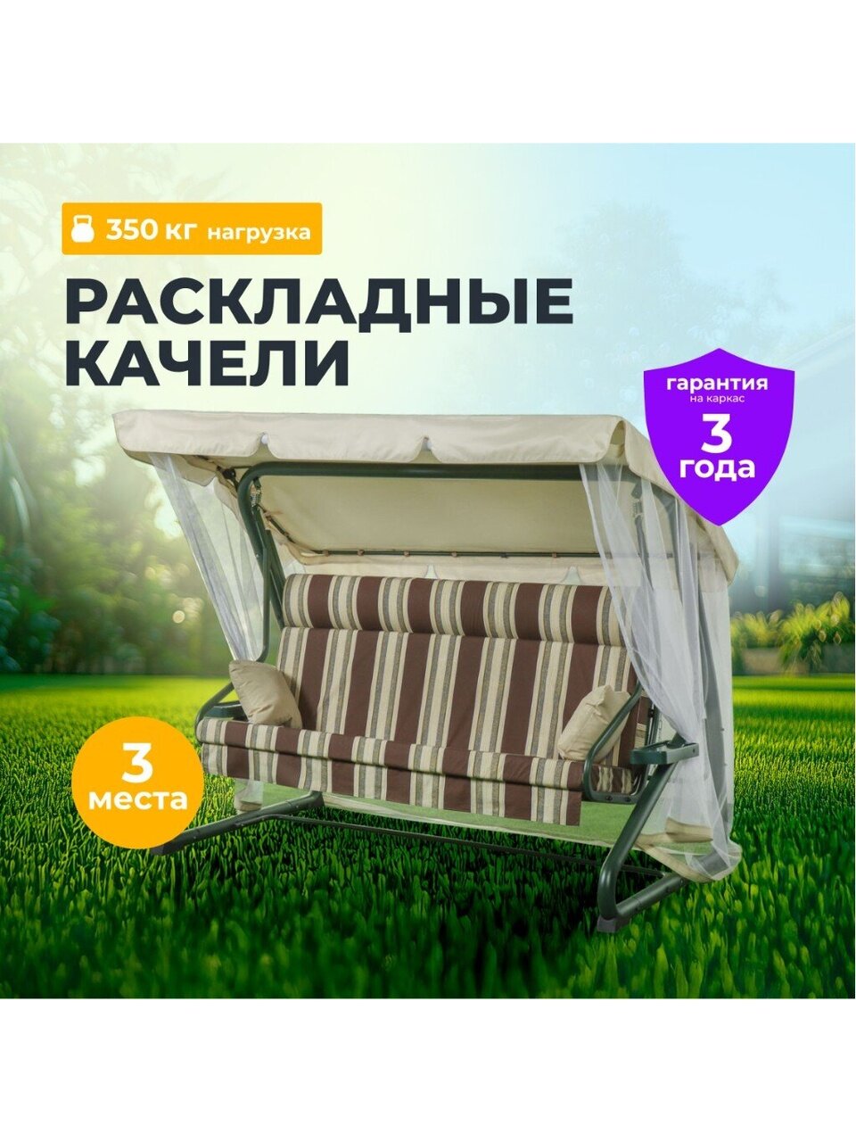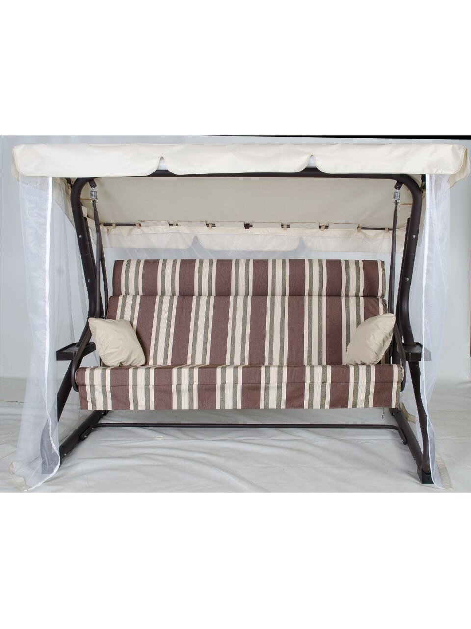 Вы можете приобрести «Качели садовые 3-местные, 227х130х170 см, 350 кг, Монте, раскладываются в кровать, с москитной сеткой, шоколад, подушка, A44C.322, металл» и другие товары в нашем интернет-магазине в Старом Осколе по низким ценам и с бесплатным самовывозом.