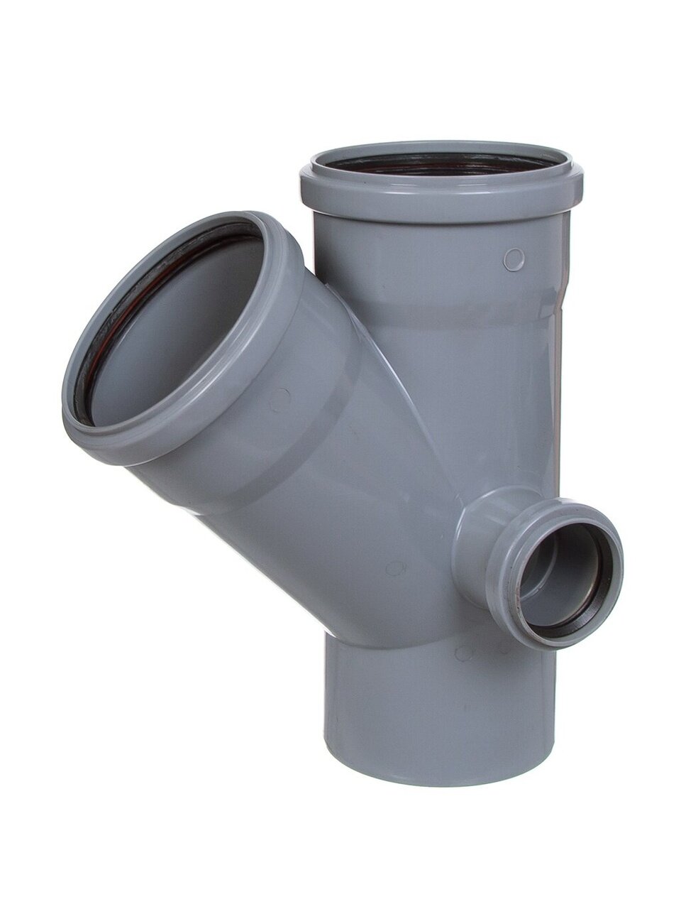 Крестовина двухплоскостная канализационная Ростурпласт диаметром 110 мм под углом 45 градусов для монтажа систем внутренней канализации. Имеет выход с правой стороны под трубу 50 мм.