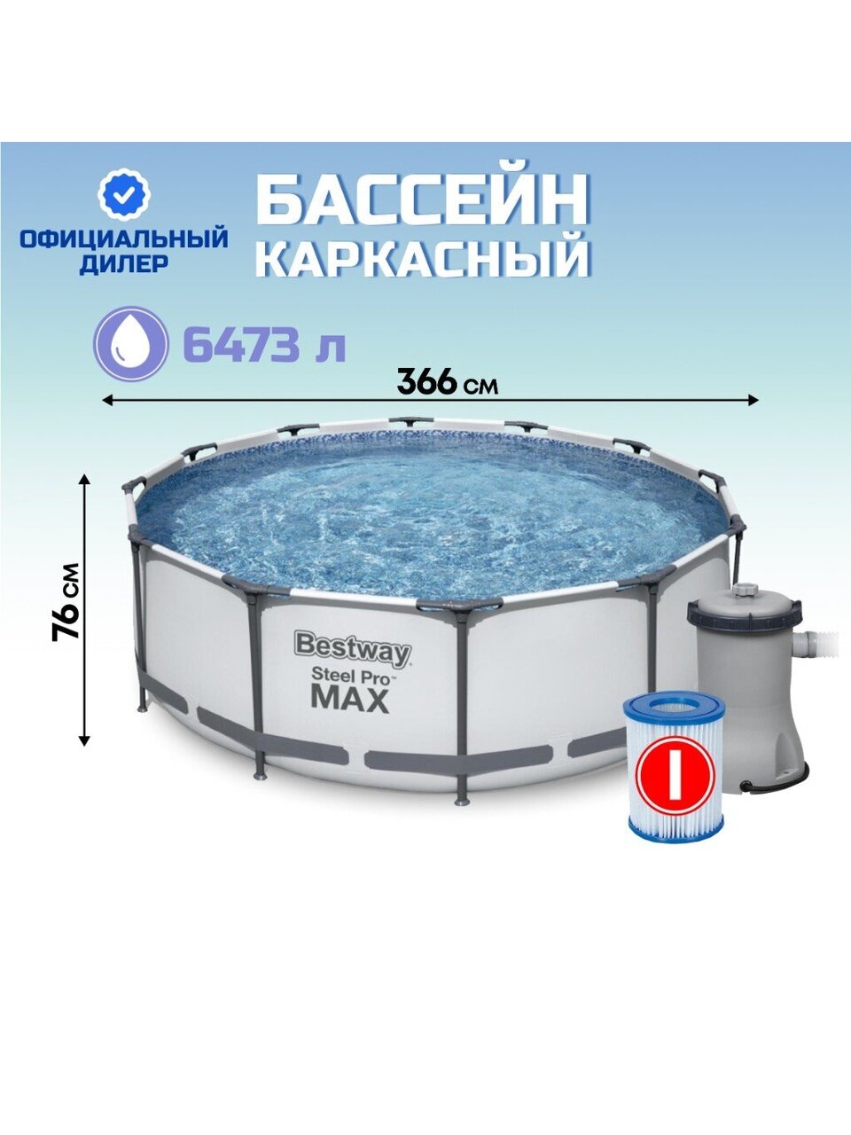 Вы можете приобрести «Бассейн каркасный Bestway, 366х76 см, Steel Pro Max, 56416BW, фильтр-насос, 6473 л» и другие товары в нашем интернет-магазине в Иваново по низким ценам и с бесплатным самовывозом.
