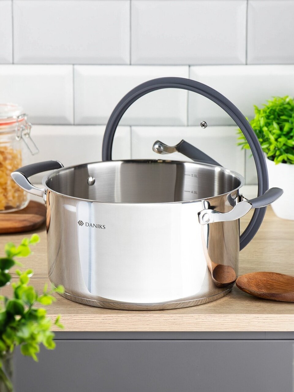 Кастрюля Daniks Верма из высококачественной нержавеющей стали 304 объёмом 5.7 литра — оптимальный выбор для тех, кто ищет надёжную посуду для индукционных плит, газовых, электрических и стеклокерамических поверхностей. Благодаря капсульному дну (3 мм) тепло распределяется равномерно, что важно для приготовления супов, макарон, каш и пюре без пригорания. Стеклянная крышка с выпускным клапаном позволяет контролировать процесс и предотвращает выкипание.