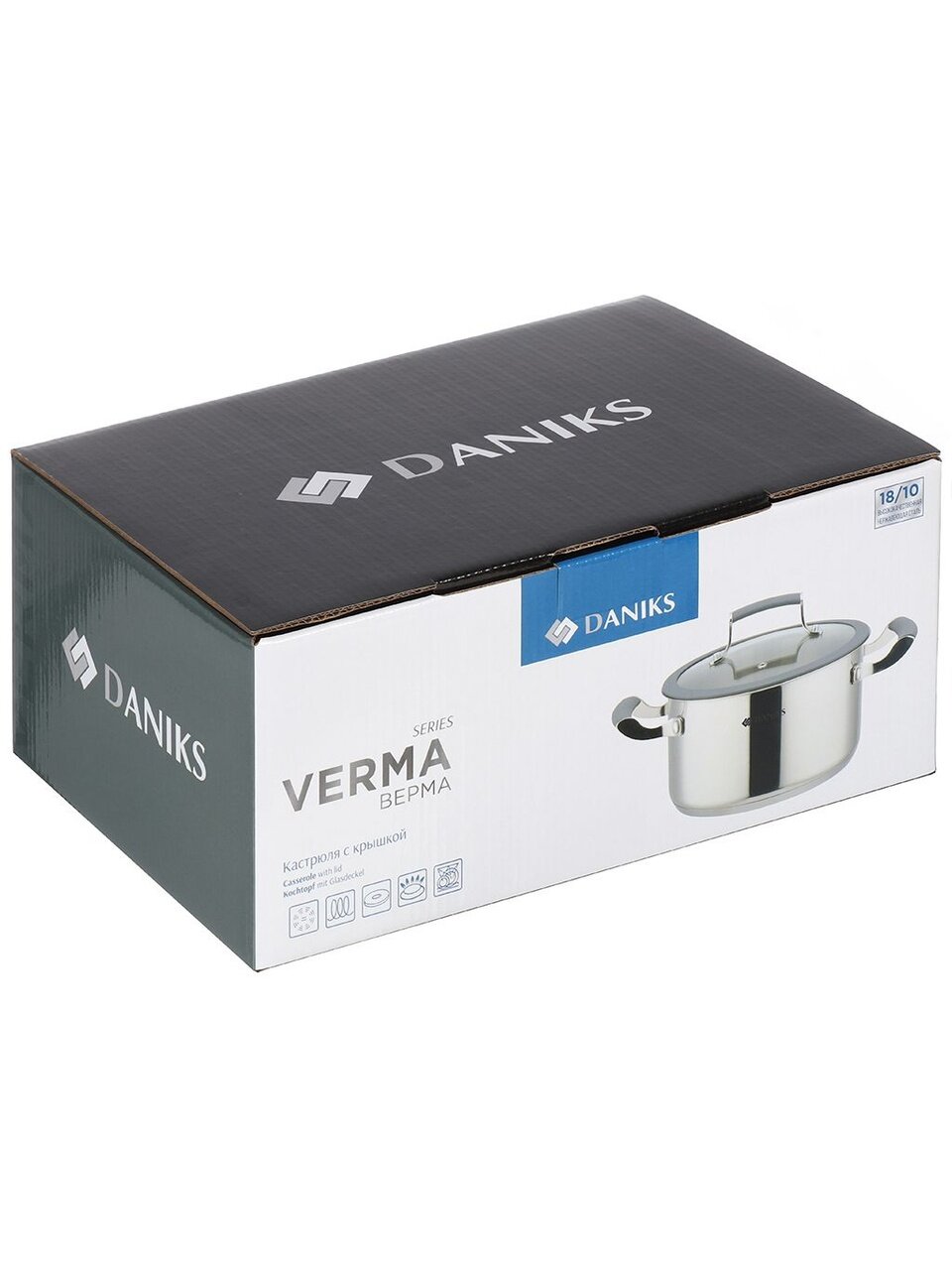 Кастрюля нержавеющая сталь 5.7 л Daniks Верма — универсальное решение для дома и дачи: капсульное дно, стеклянная крышка, подходит для индукции и посудомоечной машины.