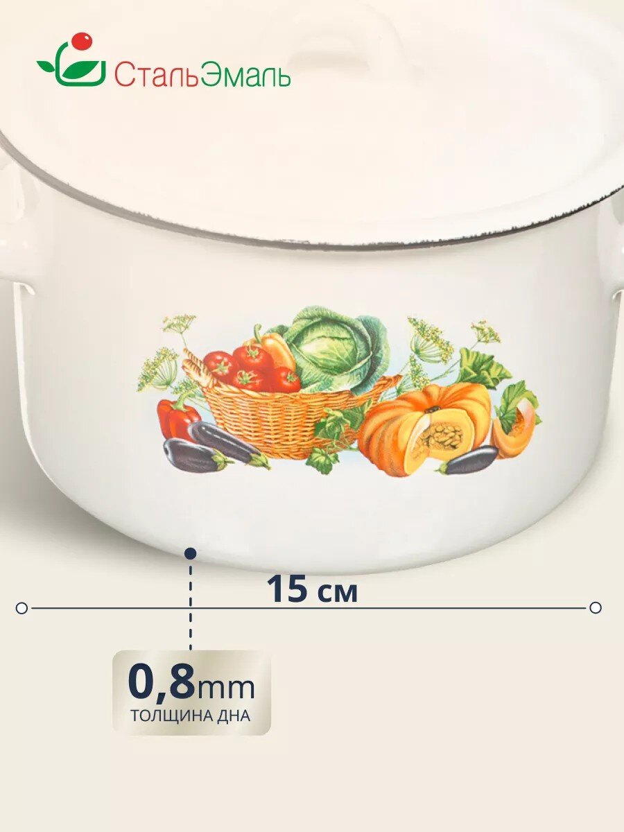 Кастрюля эмалированная СтальЭмаль 1.5 л: компактное решение для дома и дачи, подходит для индукционных плит, легко моется, гарантия 24 месяца.