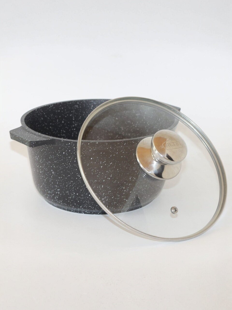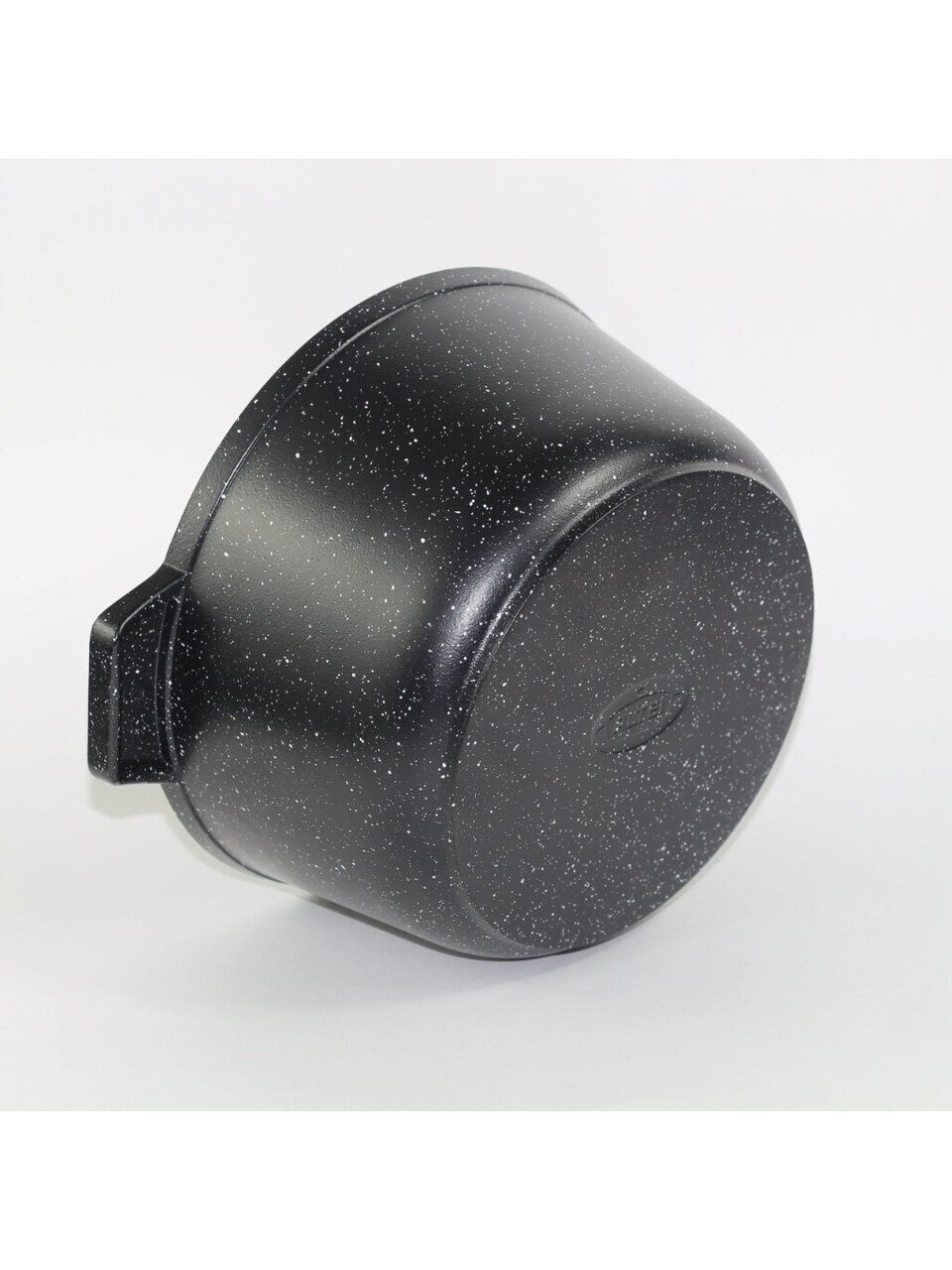 Кастрюля Алтей Granit Perfection black 4 л: антипригарное гранитное покрытие, толстое дно 6 мм, стеклянная крышка — идеальный выбор для плова и супа дома и на даче.