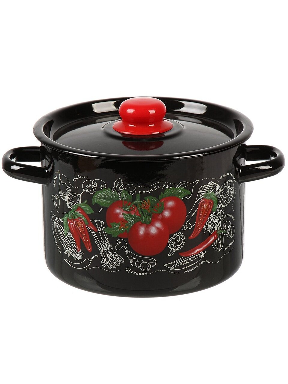 Эмалированная кастрюля СтальЭмаль «Помидорки» 4,5 л: стиль для кухни, универсальность для индукции, идеальна для супов и пасты — выгодно купить с гарантией 24 мес.