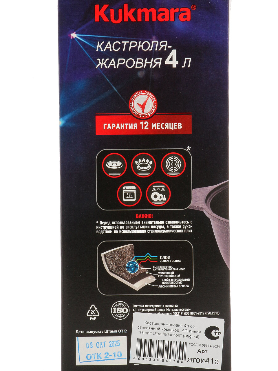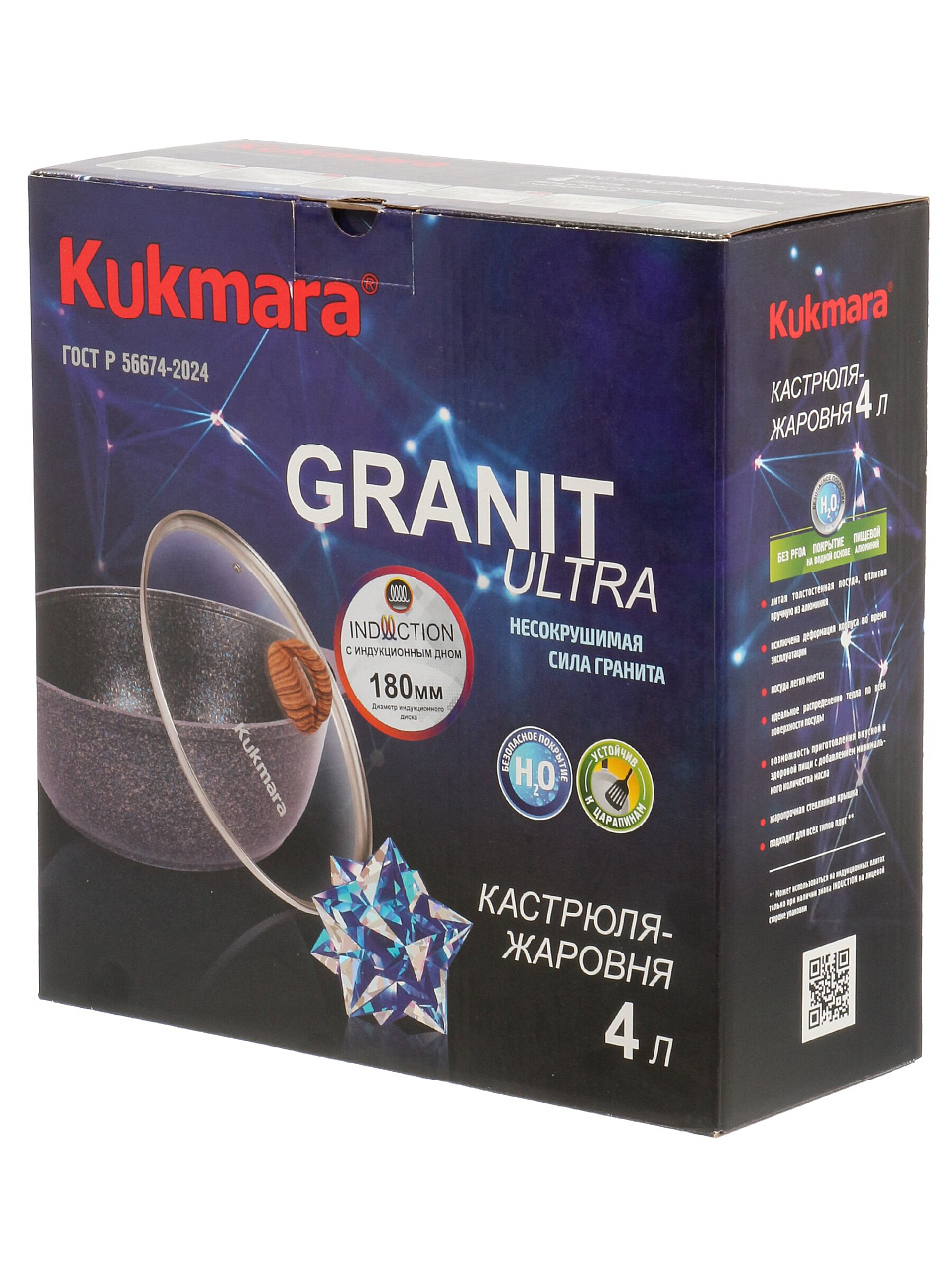 Кастрюля-жаровня Kukmara Granit Ultra Induction 4 л: идеальный выбор для плова, запеканок и макарон — надежно, удобно, для любой плиты, скидки на сайте.