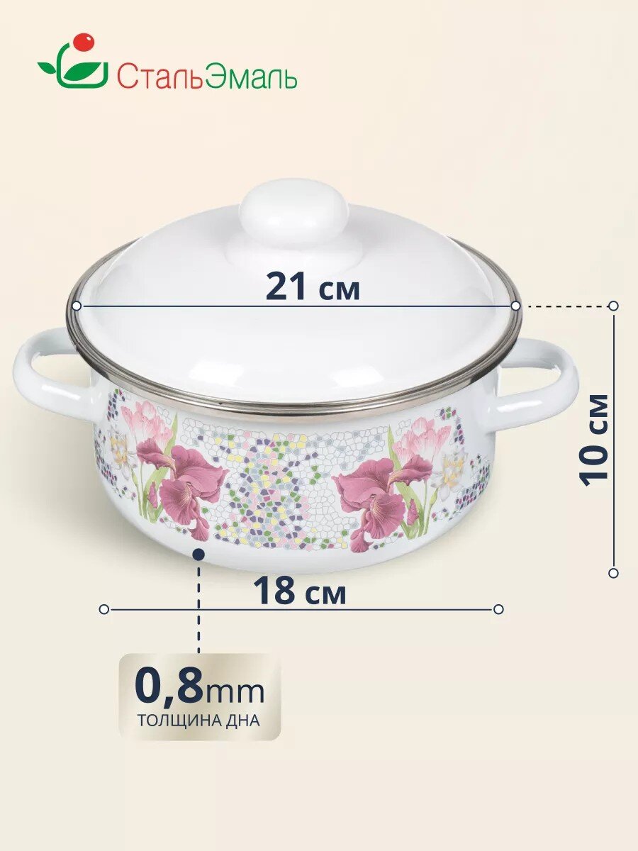 Эмалированная кастрюля 2 л СтальЭмаль «Мозаика белоснежная» — идеальный выбор для дома и дачи: подходит для индукционных плит, долговечна, легко мыть.