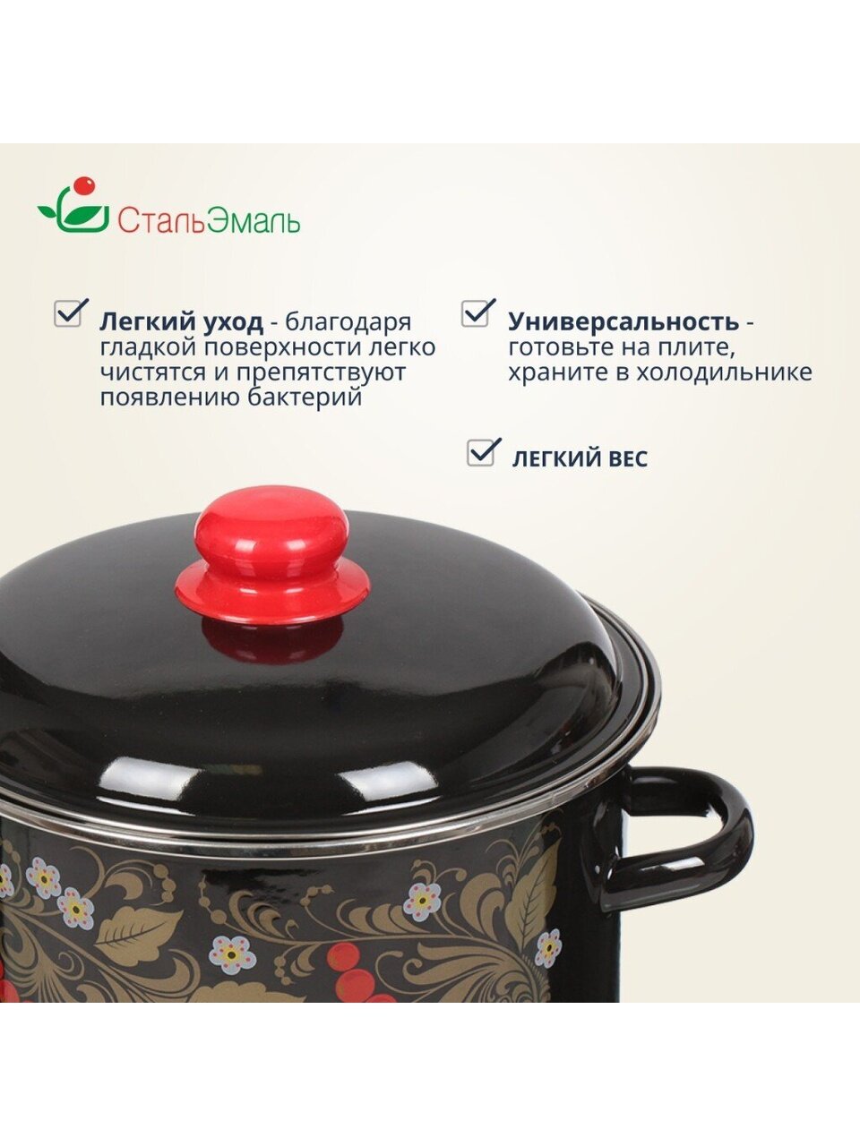 Закажите кастрюлю СтальЭмаль Рябина с выгодой — получите надежную посуду для любых блюд с гарантией производителя и быстрой доставкой.