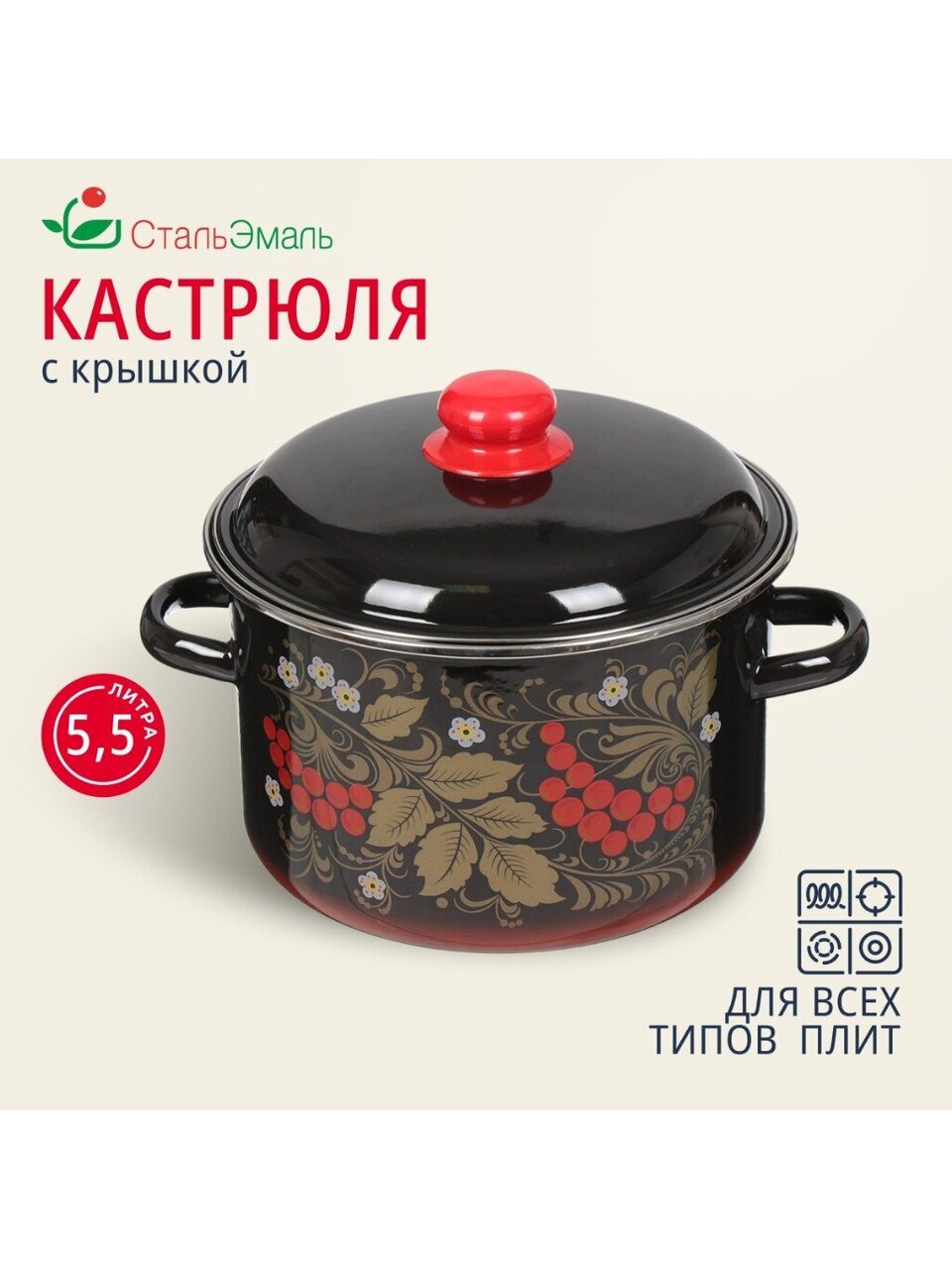 Эмалированная кастрюля СтальЭмаль Рябина 5.5 л для индукции: универсальное решение для кухни, дачи и подарка. Закажите с гарантией 24 месяца.