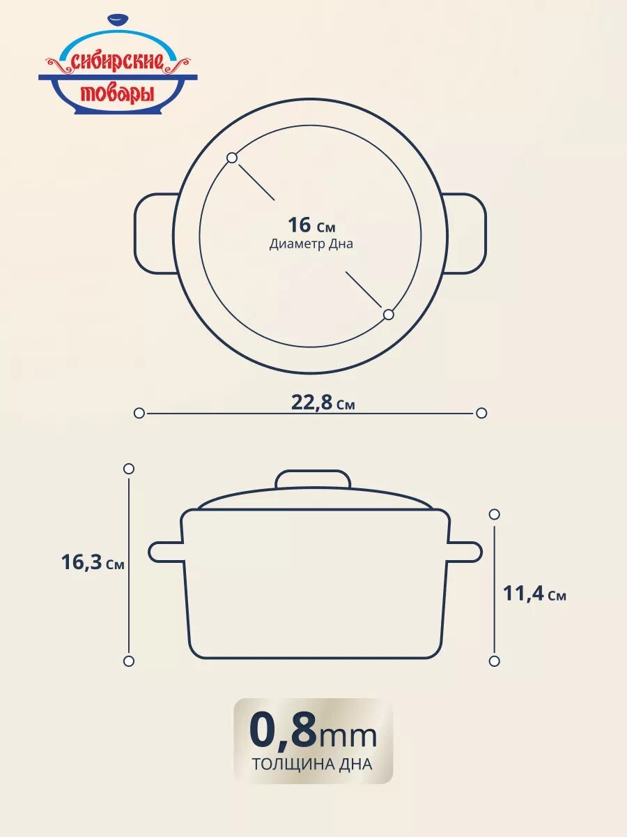Объем кастрюли — 2 литра, диаметр дна и крышки — 16 см. Это оптимальный выбор для приготовления блюд на 2-3 человек, подходит для ежедневного использования на всех типах плит.