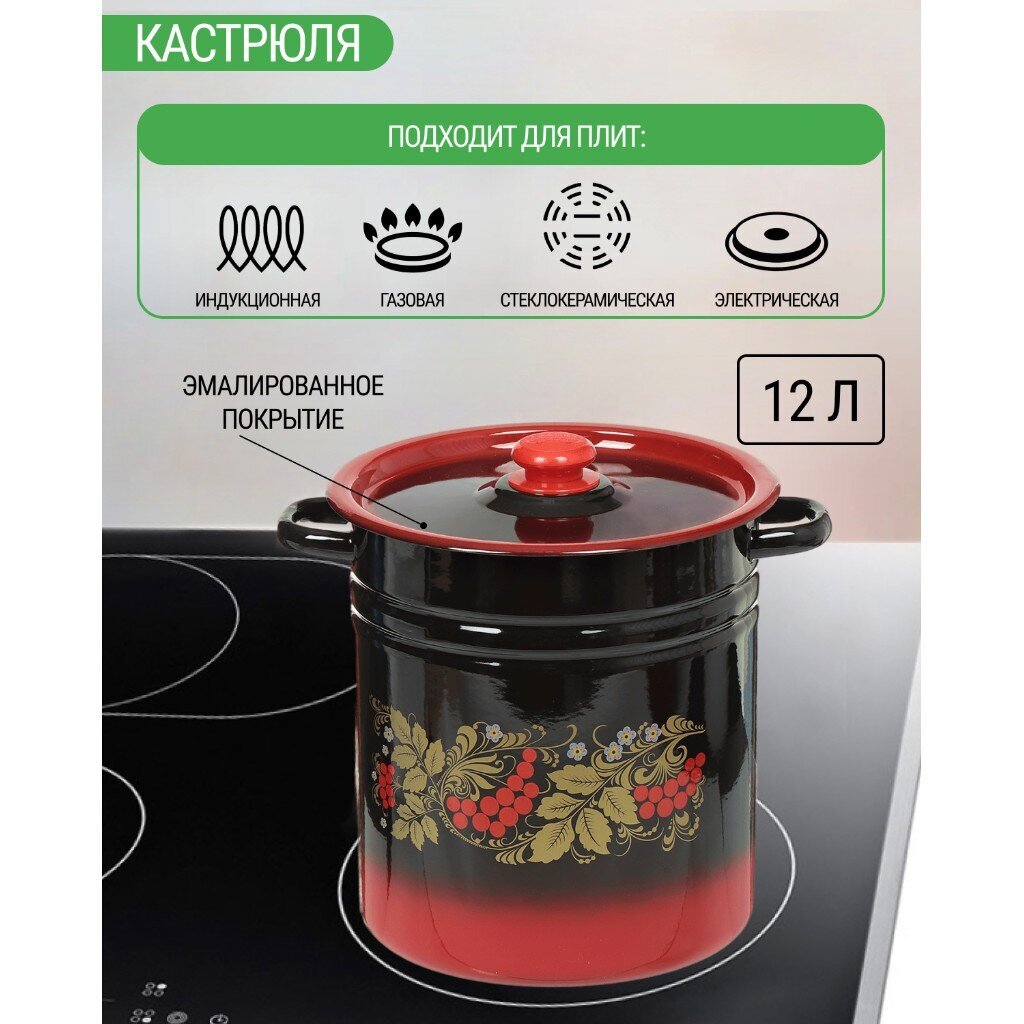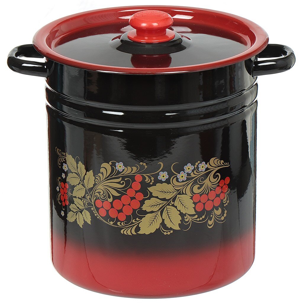 Кастрюля эмалированная сталь, 12 л, крышка сталь, цилиндрическая, Сибирские товары, С1624.38, черно-красная