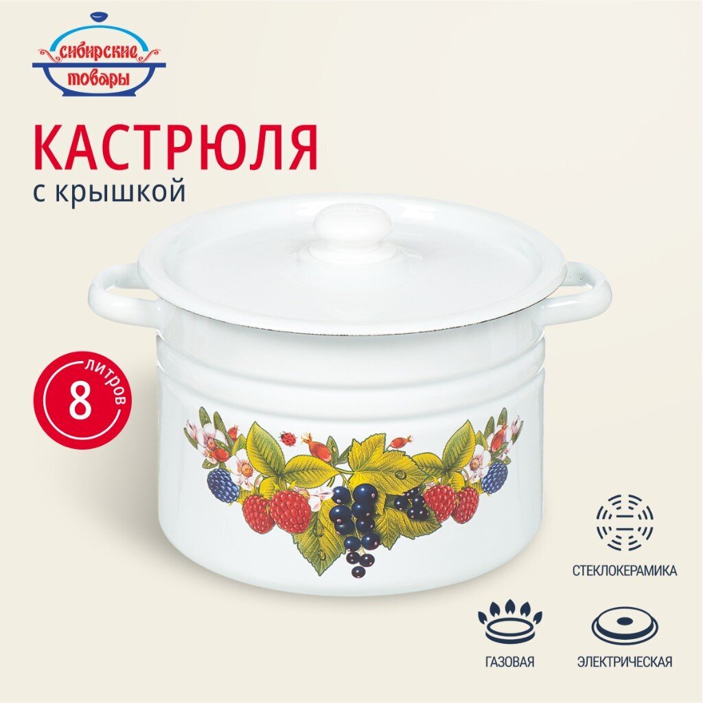 Эмалированная кастрюля 8 л с декором — универсальное решение для семьи: долговечная сталь, стильный дизайн, удобно мыть, выгодно купить для дома и дачи.