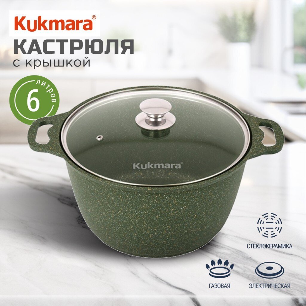 Кастрюля Kukmara Trendy style 6 л с антипригарным покрытием и стеклянной крышкой — идеальный выбор для семьи: готовьте плов, суп, макароны без пригорания и хлопот.