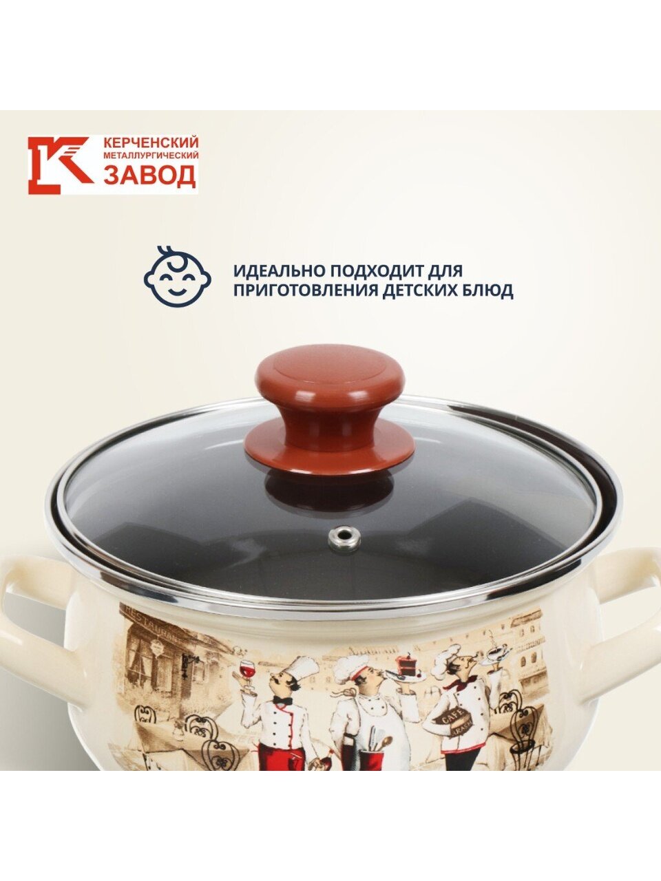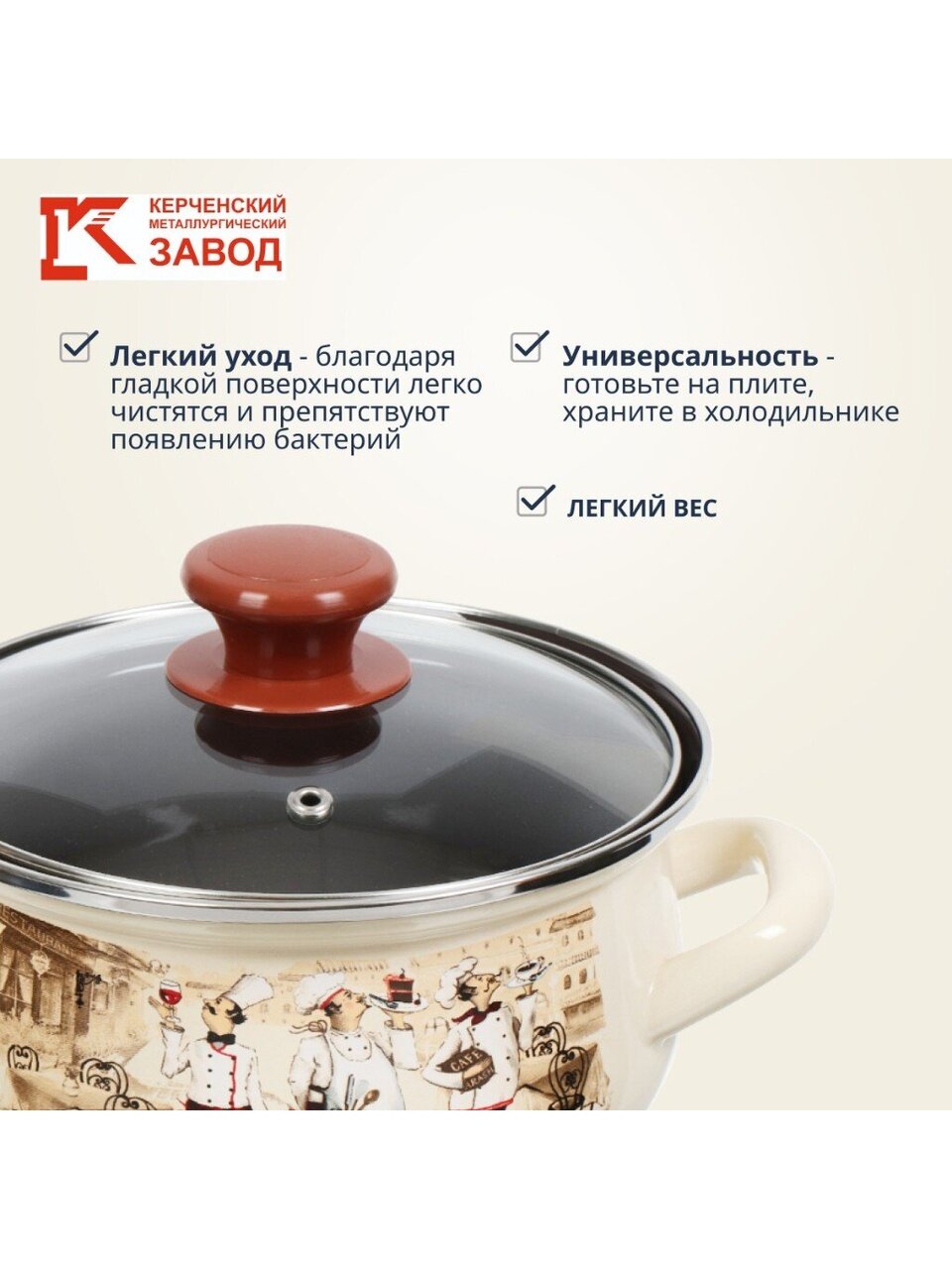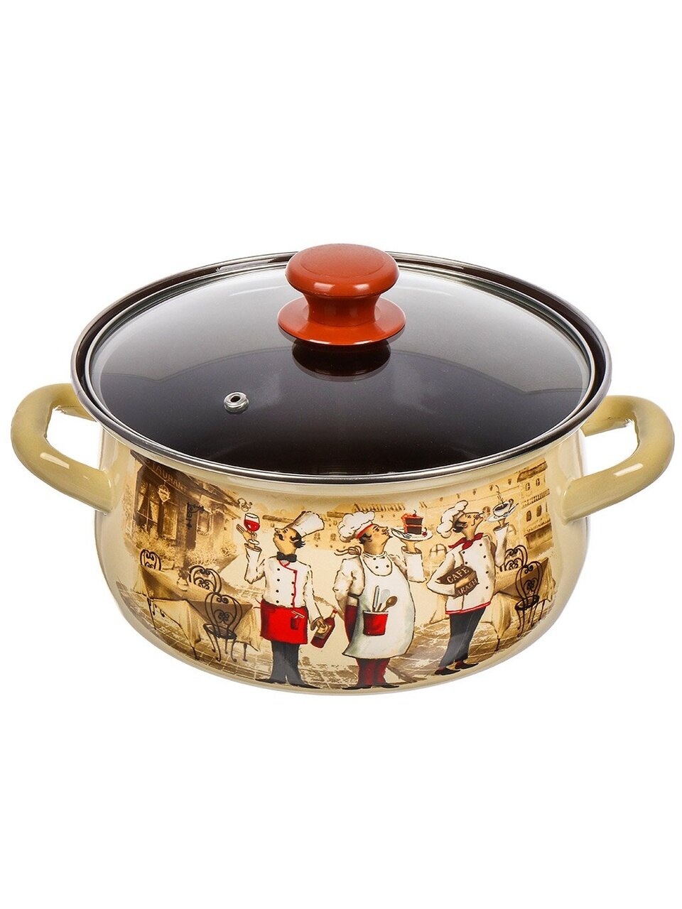 Кастрюля эмалированная сферическая 3 л с декором «Сомелье» — идеальное решение для стильной кухни и здорового приготовления, подходит для газовых и электрических плит.