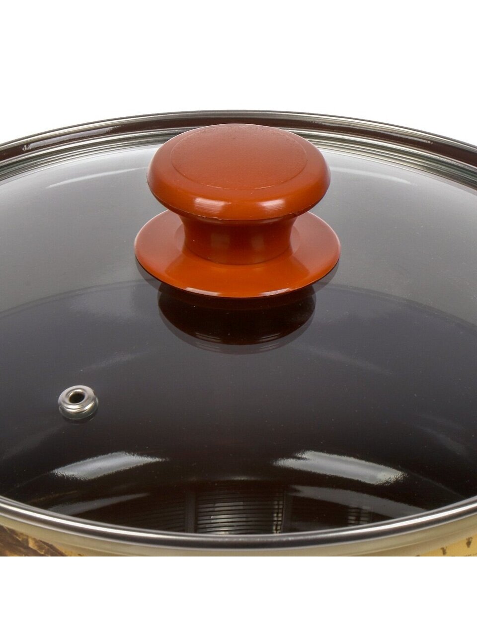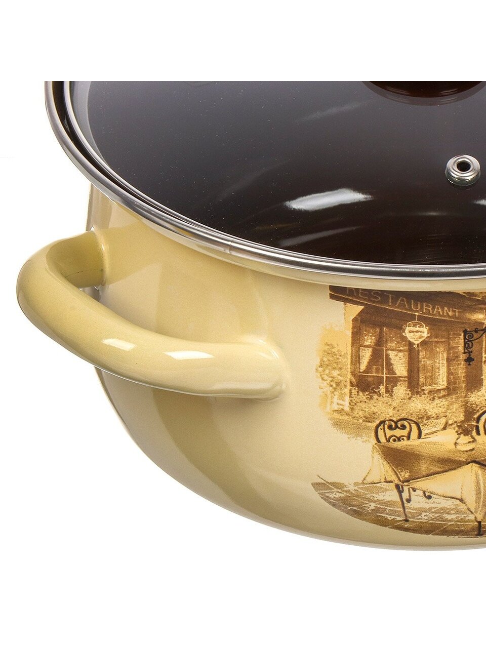 - Объем 3 л, прочная эмалированная сталь, крышка из закалённого стекла — долговечность и безопасность