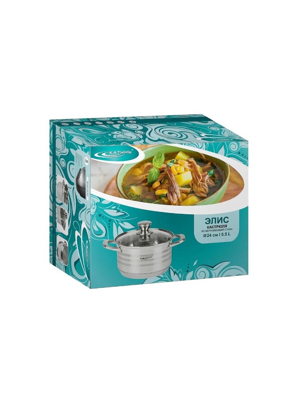 Кастрюля из нержавеющей стали 5.5 л с капсульным дном Катунь Элис: для индукции, газовых и электрических плит — универсальное решение для дома и дачи.
