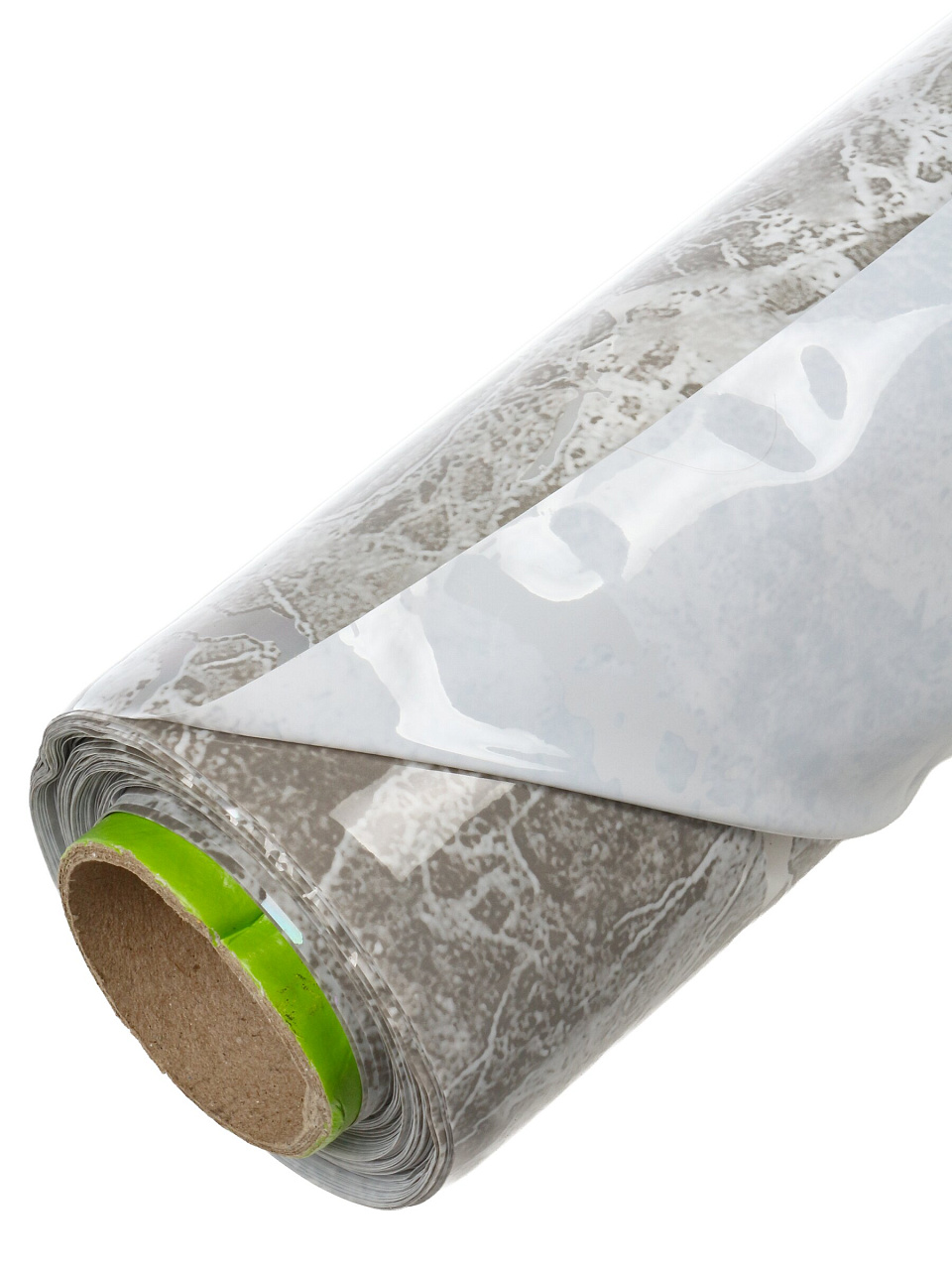 Рулон шириной 1,4 м и длиной 20 м, толщина 0,2 мм. Клеёнку легко подрезать под нужный размер обычными ножницами — сохраняет форму и не крошится.