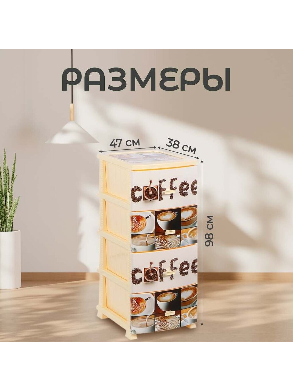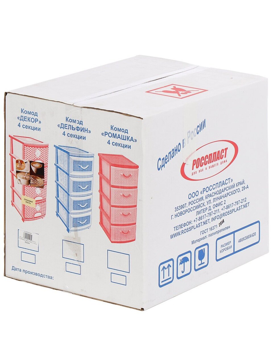 Современный дизайн, яркие картинки и разнообразные цветовые решения пластикового комода органично дополнят любой интерьер. В комоде есть четыре объёмных, легко выдвигающихся ящика, в которых можно хранить чай/кофе, конфеты если он стоит на кухне или например косметику, предметы личной гигиены или мелкие детали гардероба (колготки, галстуки, ремни) или любые принадлежности.