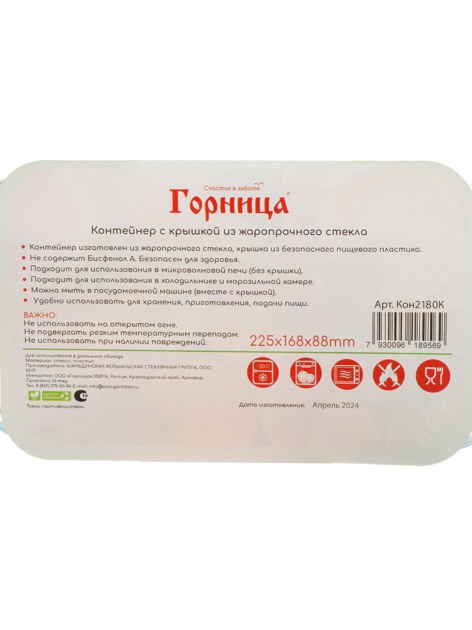 Вы можете приобрести «Контейнер пищевой жаропрочное стекло, 1.8 л, 22.5х16.8х8.8 см, прямоугольный, Горница, Кон2180К» и другие товары в нашем интернет-магазине в Ельце по низким ценам и с бесплатным самовывозом.