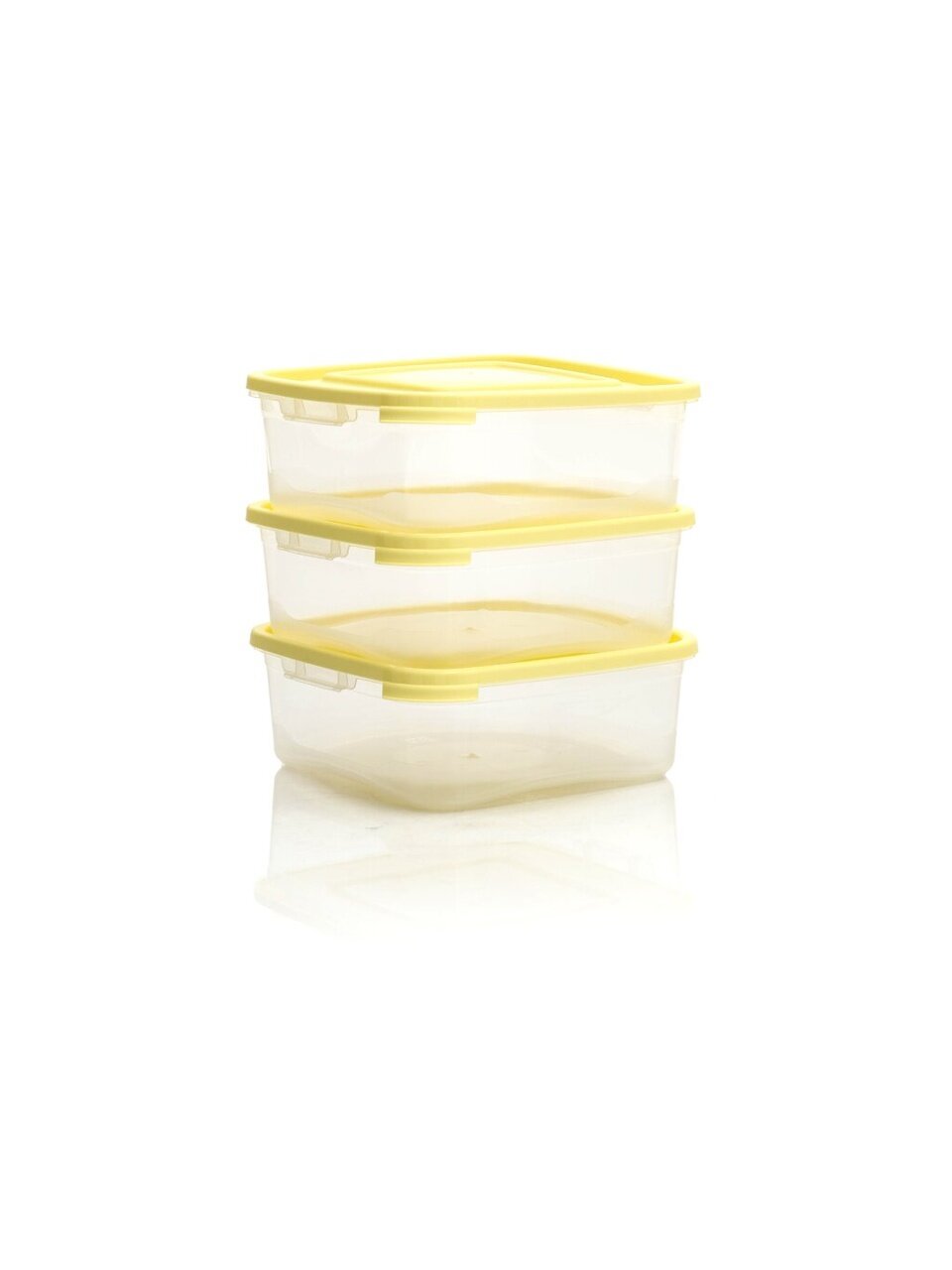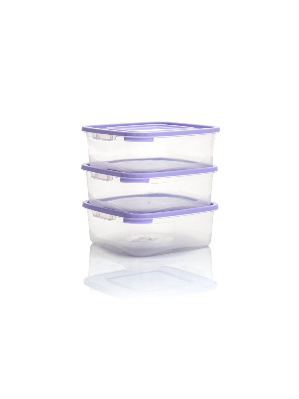 Каждый контейнер рассчитан на 0,7 литра, высота — 8,5 см, в наборе три штуки. Цвета — в ассортименте, без подбора.