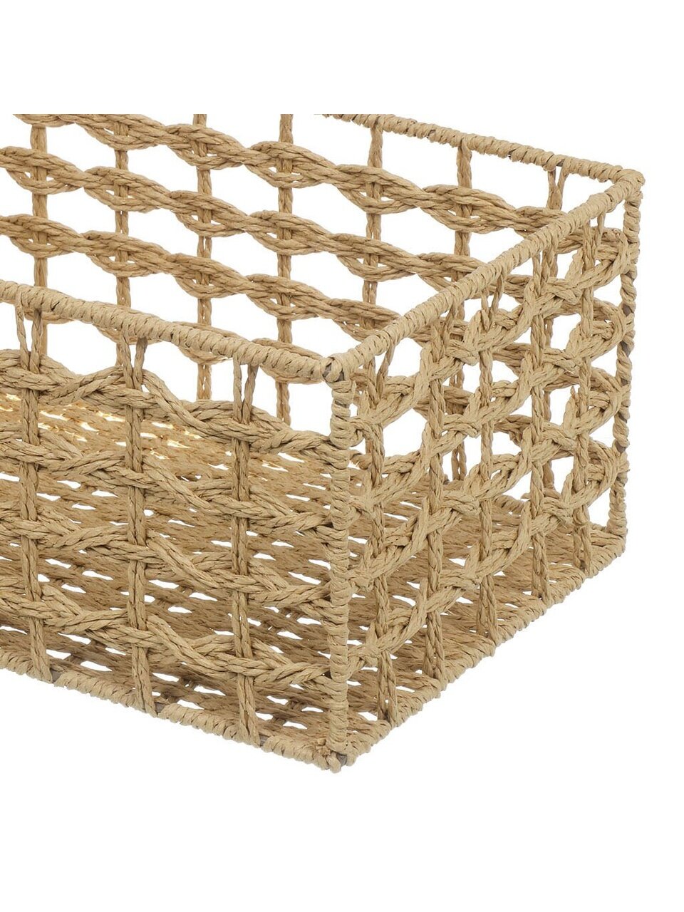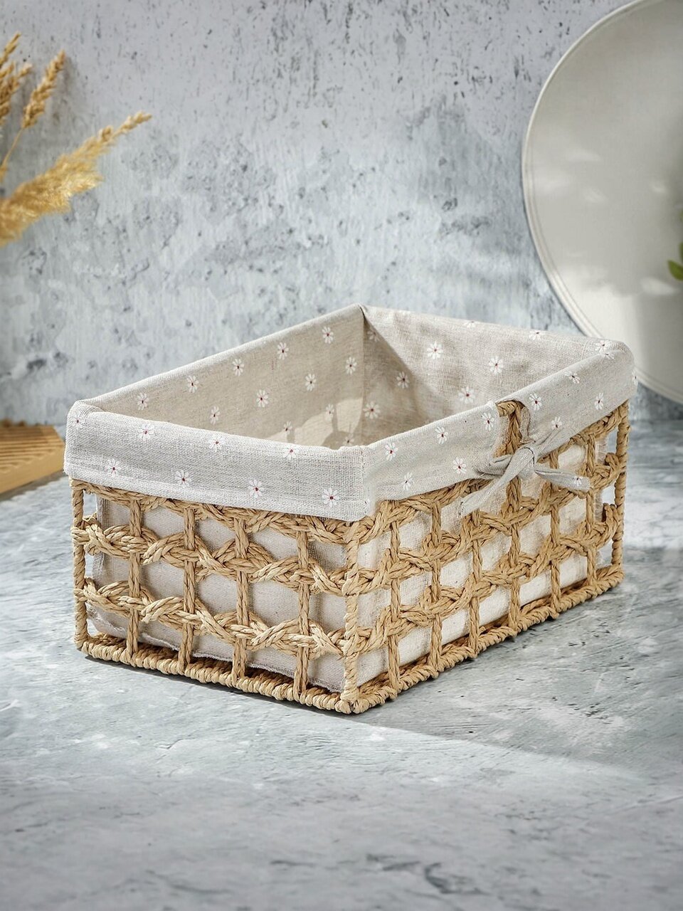 Корзина B090092 изготовлена с вниманием к деталям, что обеспечивает её долговечность и эстетичность. Плетеная структура не только придаёт изделию особый шарм, но и делает его прочным и устойчивым к износу. Прямоугольная форма корзины позволяет легко размещать её в любых уголках дома, будь то полка в шкафу или открытая поверхность в гостиной.